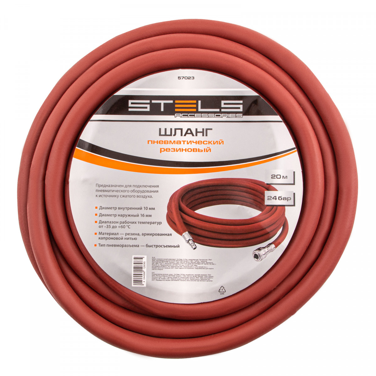 Шланг пневматический резиновый, 10 x 16 мм, 24 бар, армированный, быстросъемное соединение, 20 м Stels