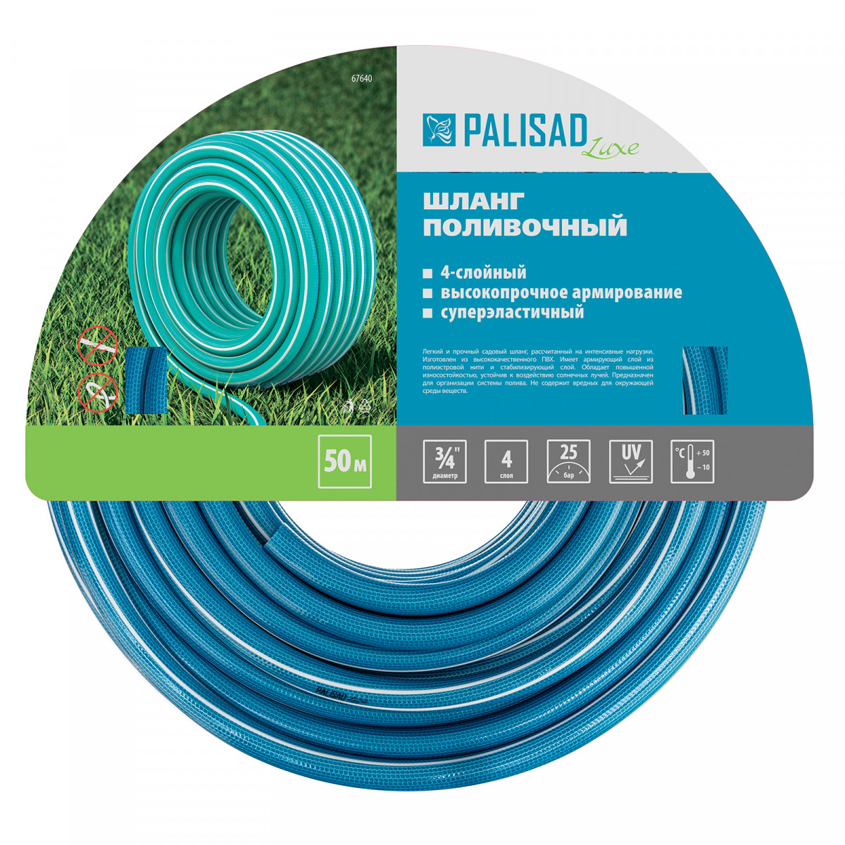 Армированный 4-слойный поливочный шланг Palisad LUXE 67640 длиной 50 м и диаметром 3/4 дюйма — это незаменимое приспособление для владельцев садово-огородных участков. Он позволяет организовать автоматическую систему орошения или осуществлять его вручную.