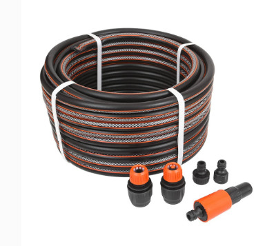 Набор для полива ЖУК Оптима включает в себя поливочный шланг и комплектующие, необходимые для его быстрого подключения и использования: