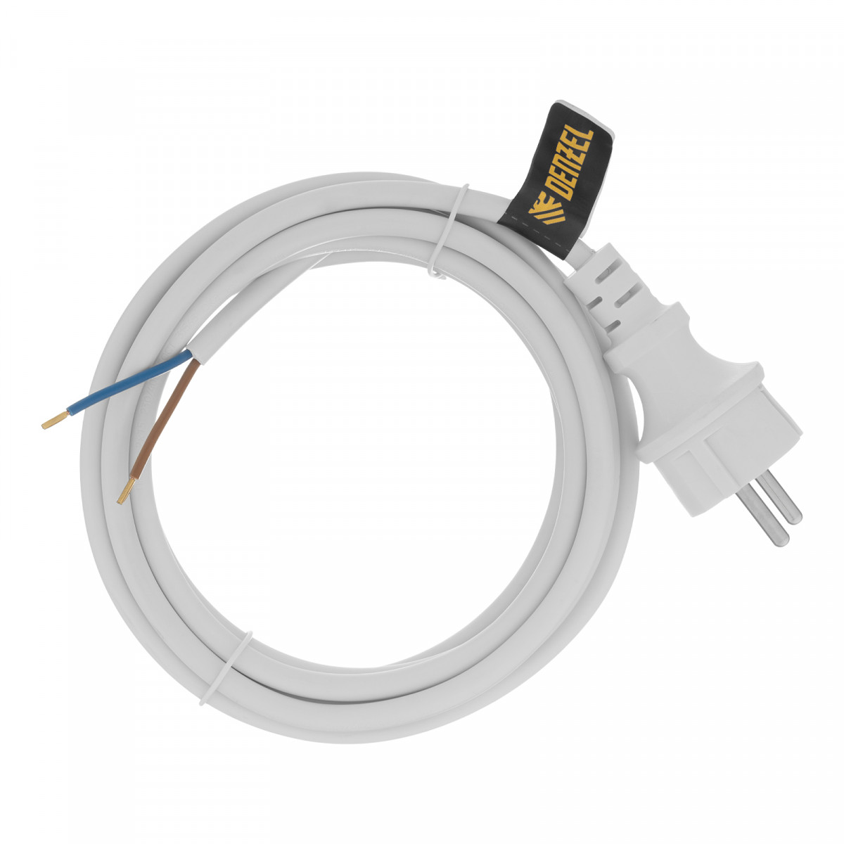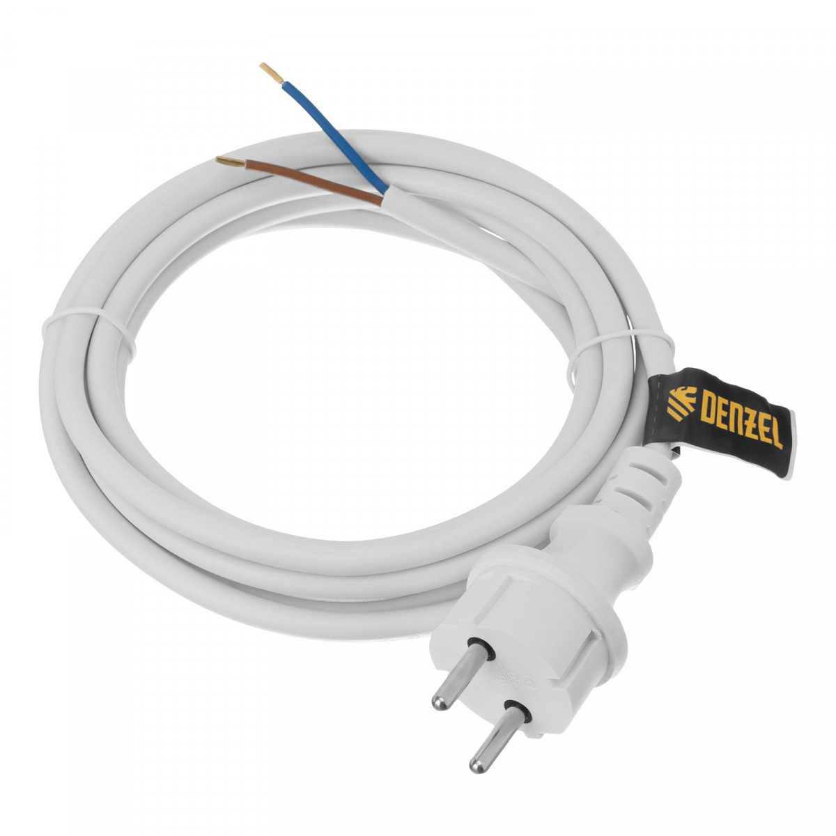 Шнур сетевой Energy Series, ПВС, 3 м, 2 x 1,5 мм, с неразборной вилкой, белый, Denzel