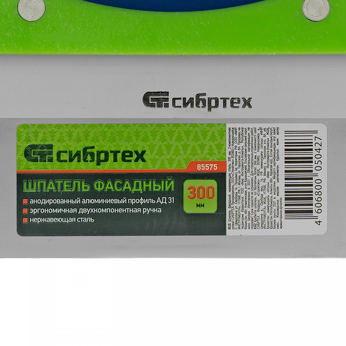 Шпатель фасадный, нержавеющая сталь, 300 мм, двухкомпонентная ручка Сибртех