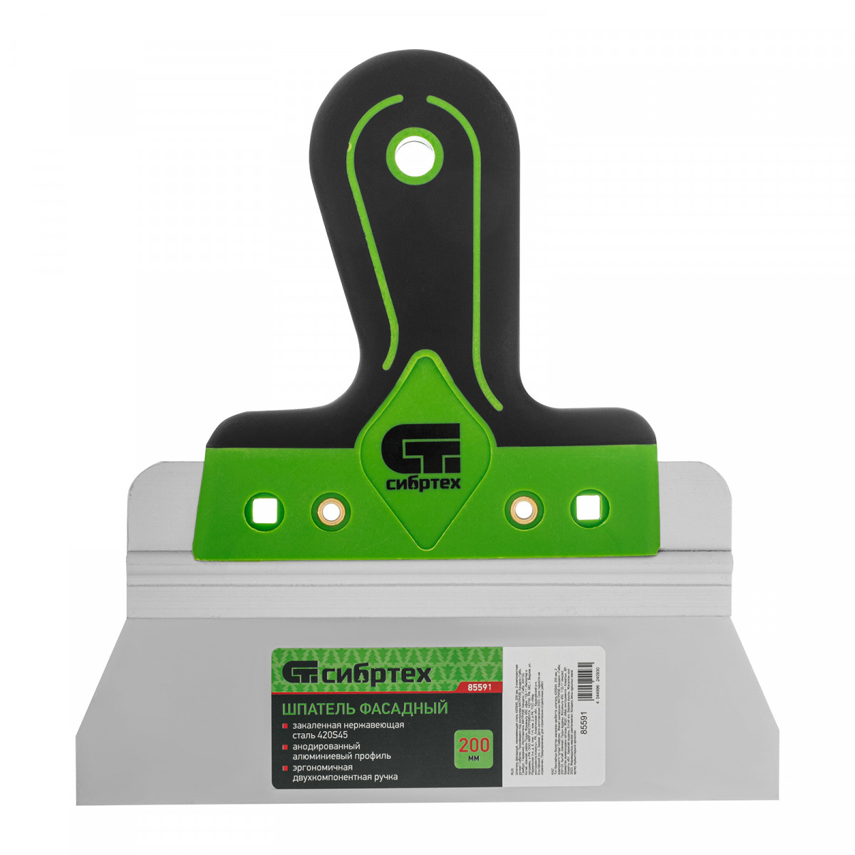 Шпатель фасадный с двухкомпонентной полимерной ручкой Сибртех 85591 — это надежный и эффективный инструмент, выполненный из нержавеющей стали 420S45. Предназначен для профессионального выравнивания поверхностей. Благодаря прочности и качественному исполнению обладает высокой производительностью и долгим сроком службы.
