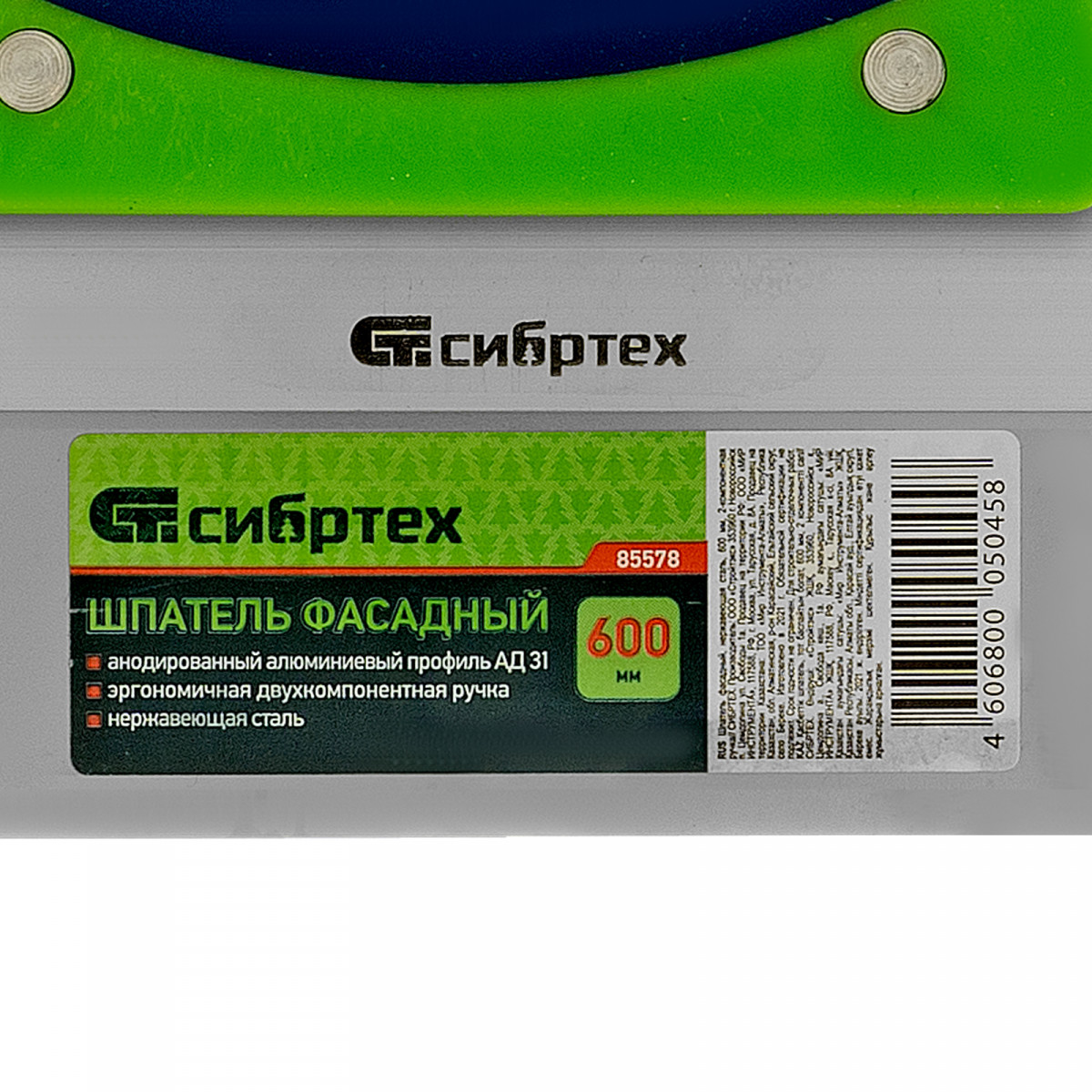 Фасадный шпатель Сибртех 85578 с рабочим полотном из нержавеющей стали шириной 600 мм и двухкомпонентной рукояткой, предназначен для нанесения, выравнивания и разглаживания отделочных составов, а также проведения других ремонтно-отделочных работ. Оптимален для заглаживания зашпаклеванных швов.