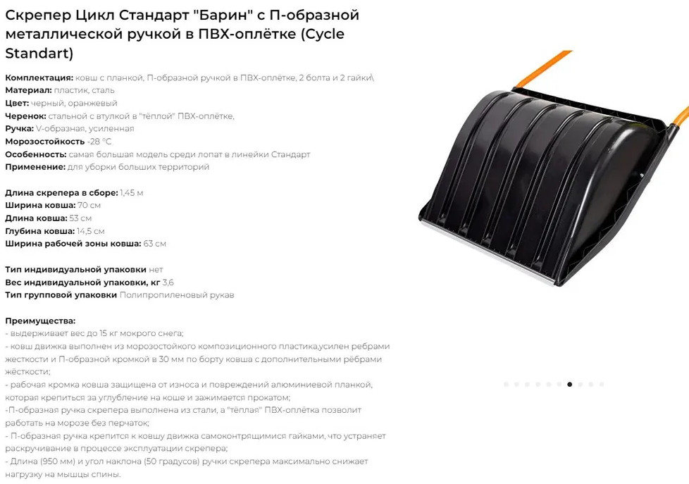 Уборка снега – процесс трудоемкий, особенно если вам необходимо расчистить большую территорию. Скрепер для снега "Барин", размер ковша 700x530 мм позволит заметно облегчить хозяйственные работы. Скрепер-волокуша демонстрирует большие функциональные возможности по сравнению с традиционной снеговой лопатой. Легкий инструмент способен перемещать значительные массы снега. П-образная ручка позволяет работать как индивидуально, так и вдвоем. Изделие выполнено из морозостойкого пластика и оснащено металлической накладкой. Благодаря надежной конструкции инструмент прослужит своему владельцу в течение долгого времени.