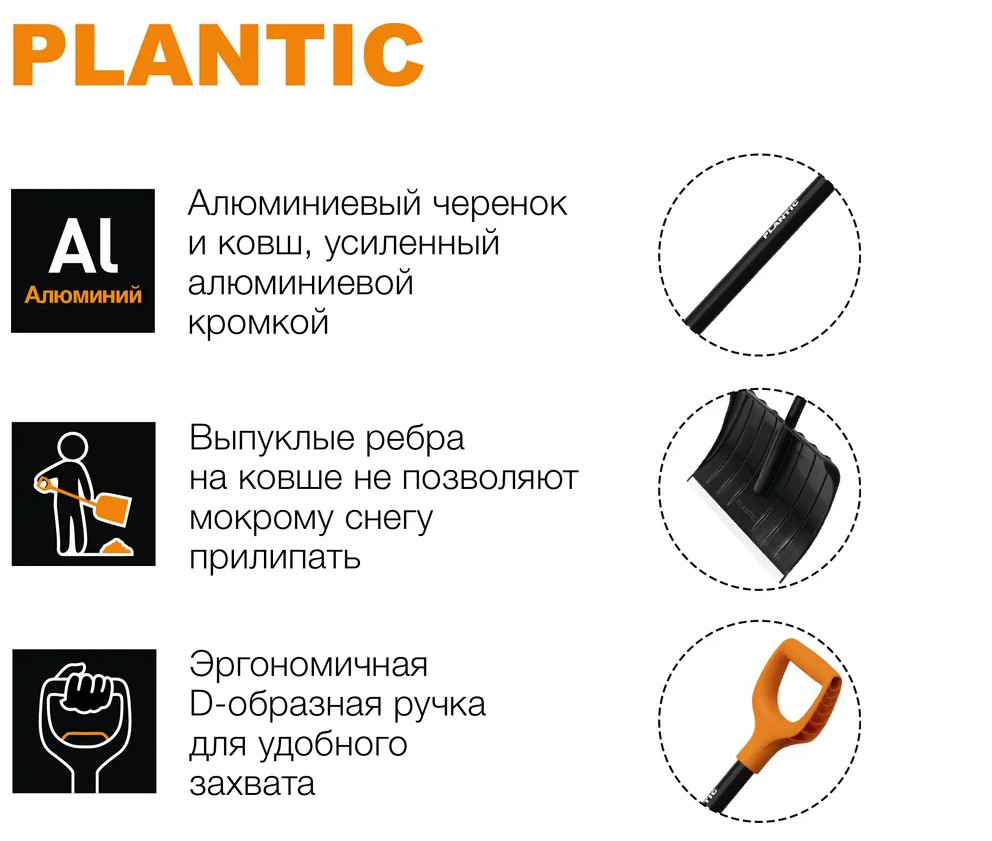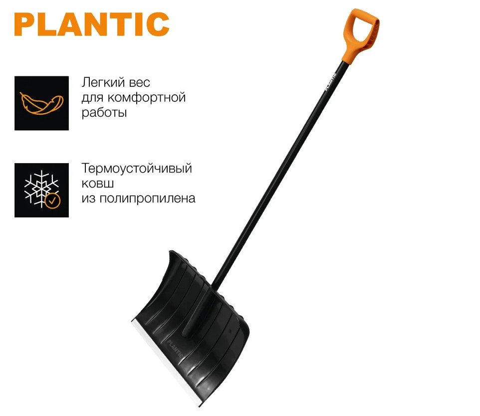Скрепер с алюминиевым черенком Plantic Snow 12006-01 подходит для уборки снега на дорожках, вокруг дома и для очистки парковочного пространства.
