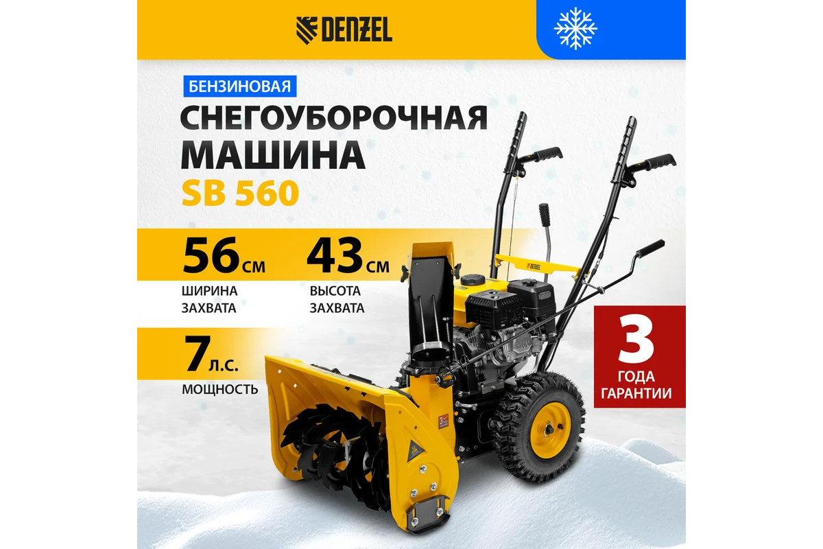 Бензиновая снегоуборочная машина Denzel SB 560 97651 предназначена для расчистки дачных участков, придомовой территории, парковок, дорожек и других заснеженных территорий.