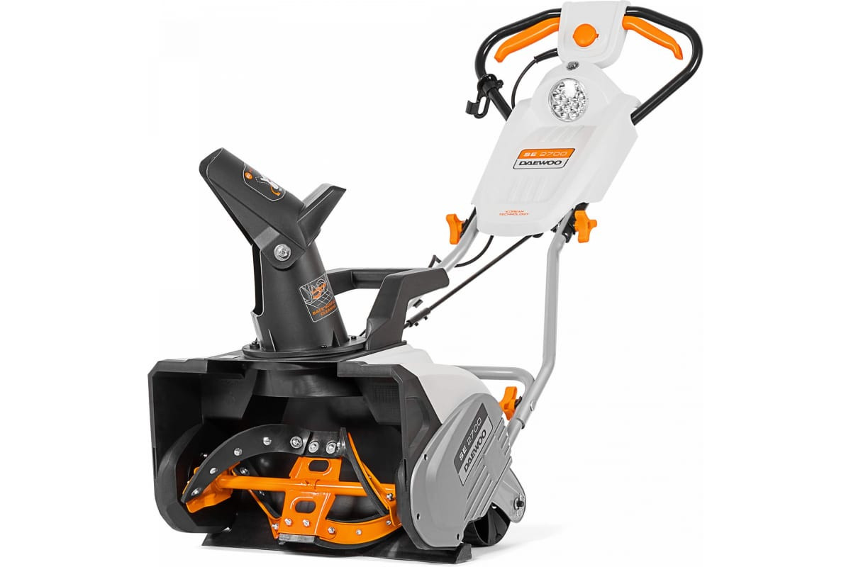 Электрический снегоуборщик DAEWOO SE 2700 используется для очистки придомовых территорий.Оснащен щеточным двигателем, работающим от сети 220 В, защищенным от перегрева, не требующим технического обслуживания.Шнек не только загребает снег, но и помогает перемещать снегоуборщик.Дальность и направление выброса снега могут изменяться.В конструкции предусмотрена яркая светодиодная фара, позволяющая продолжать работу после наступления темноты.