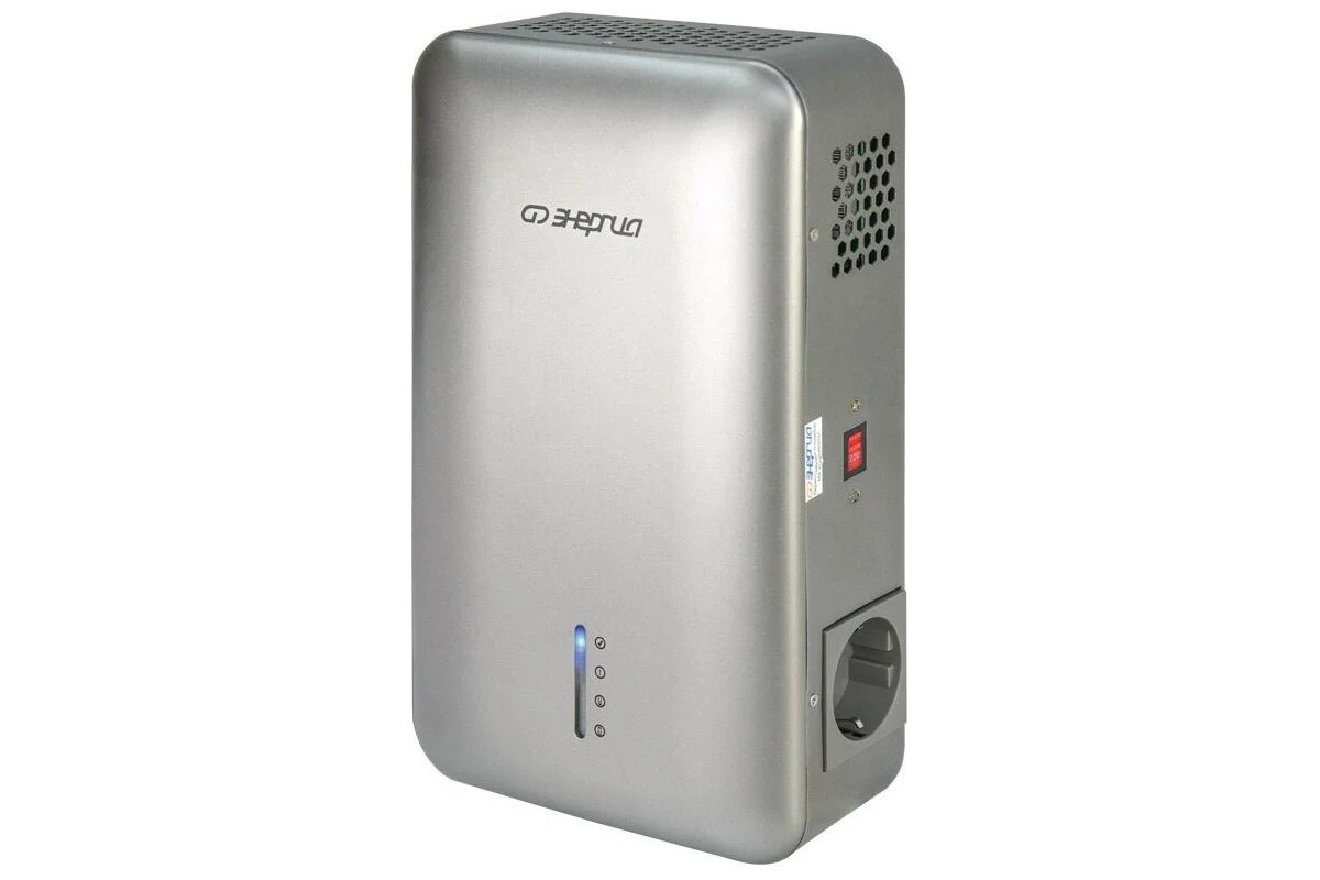 Стабилизатор напряжения Энергия Expert с двойным преобразованием электроэнергии. Выпрямитель на входе преобразует нестабильное сетевое напряжение в постоянное, а затем на выходе инвертор преобразует его снова в переменное с идеальным синусом и максимальной точностью ±2%. Регулировка напряжения происходит мгновенно, без малейших задержек.