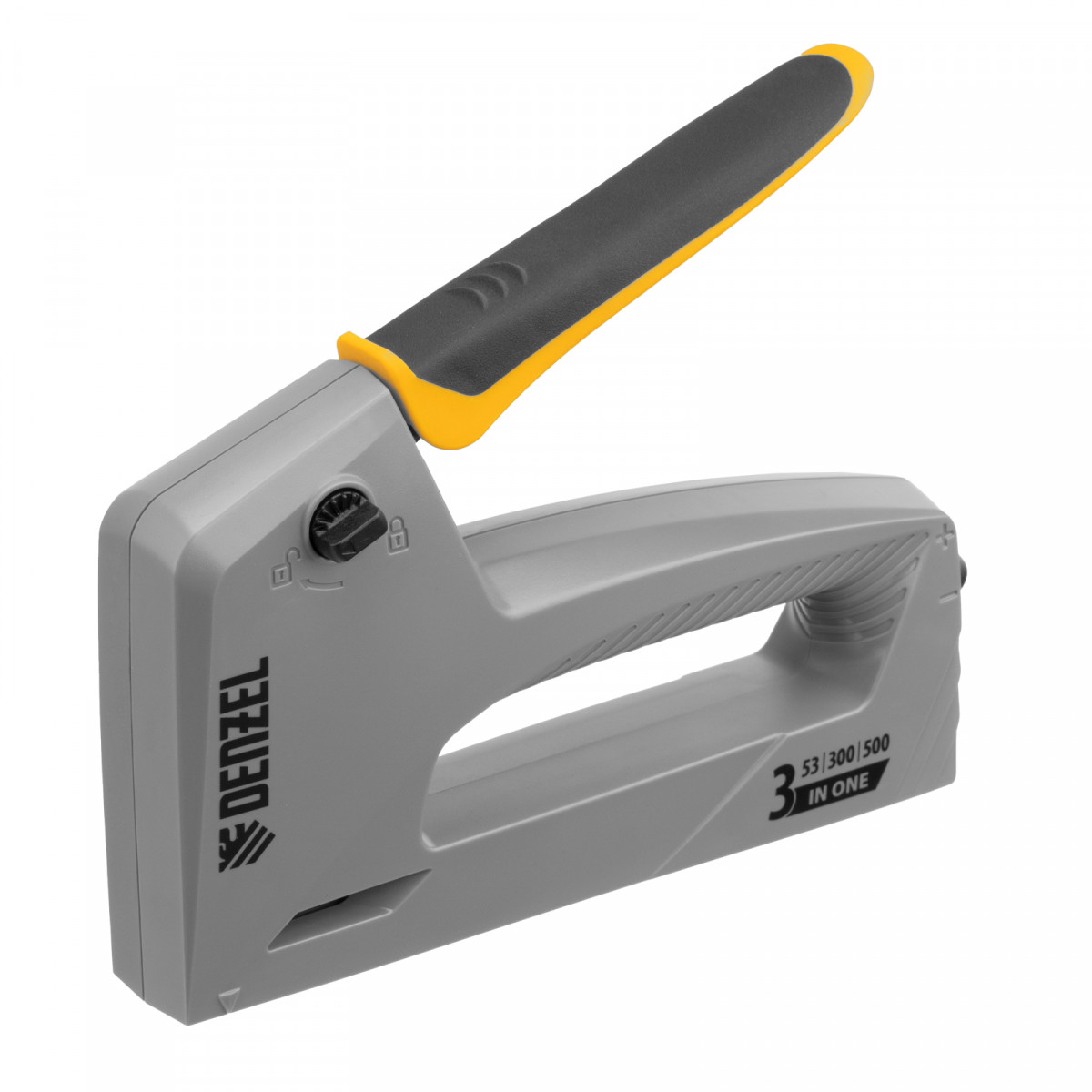 Степлер мебельный, пластиковый корпус, тип 53, 6-14 мм, тип 300, 15 мм, тип 500, 15 мм Denzel