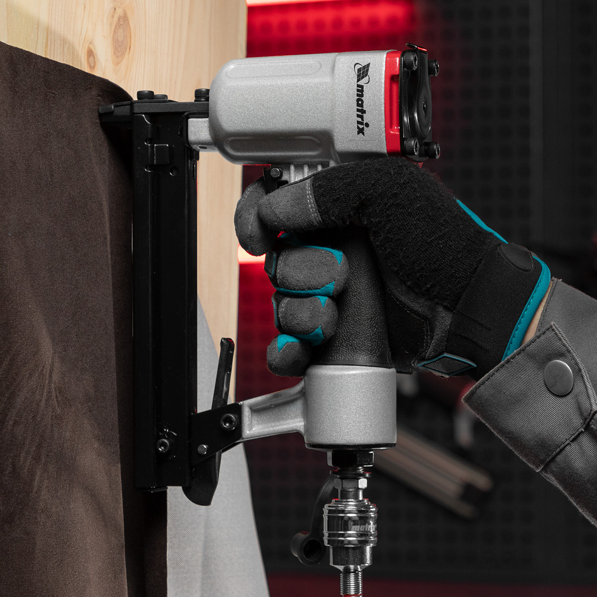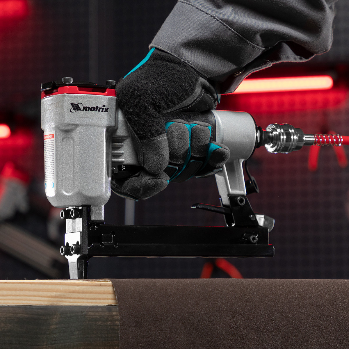 Пневматический степлер Matrix 57420 используется с прямоугольными скобами 20GA длиной от 10 до 22 мм. Его применяют для сборки деревянных каркасов и мебели, ремонта кровли, утепления домов, монтажа окон и дверей, строительства бытовок.