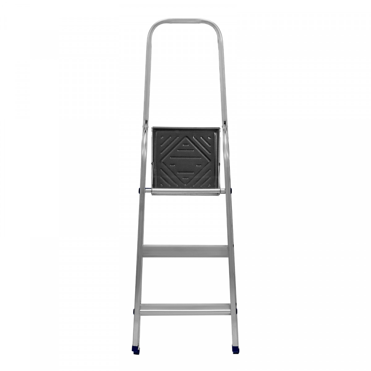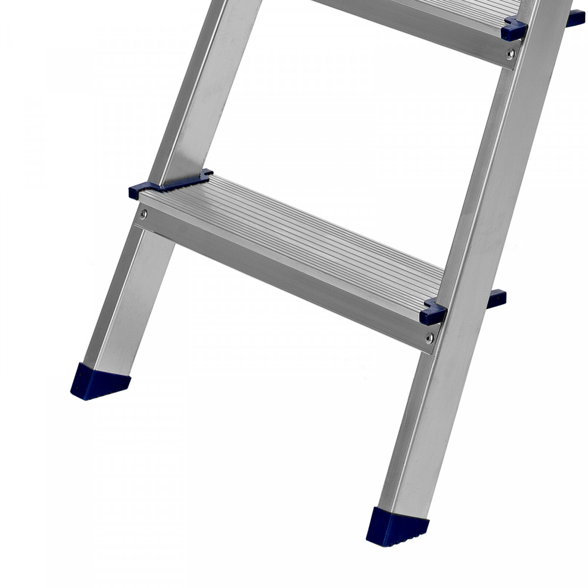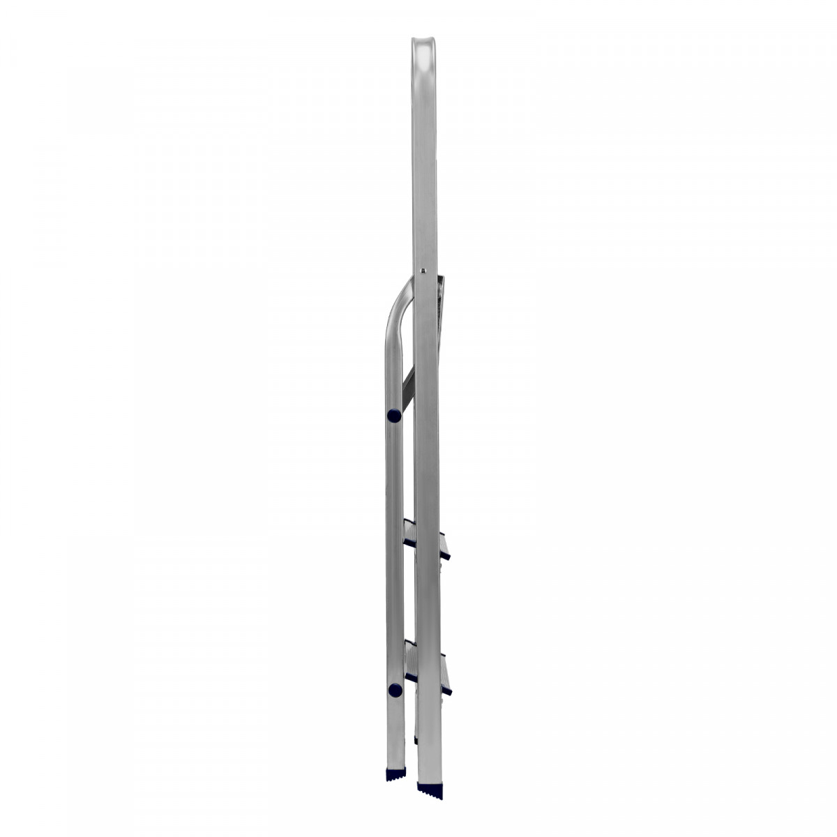 - Надежность — рама из прямоугольного алюминиевого профиля выдерживает нагрузку до 150 кг, широкие ступени закреплены заклепками.