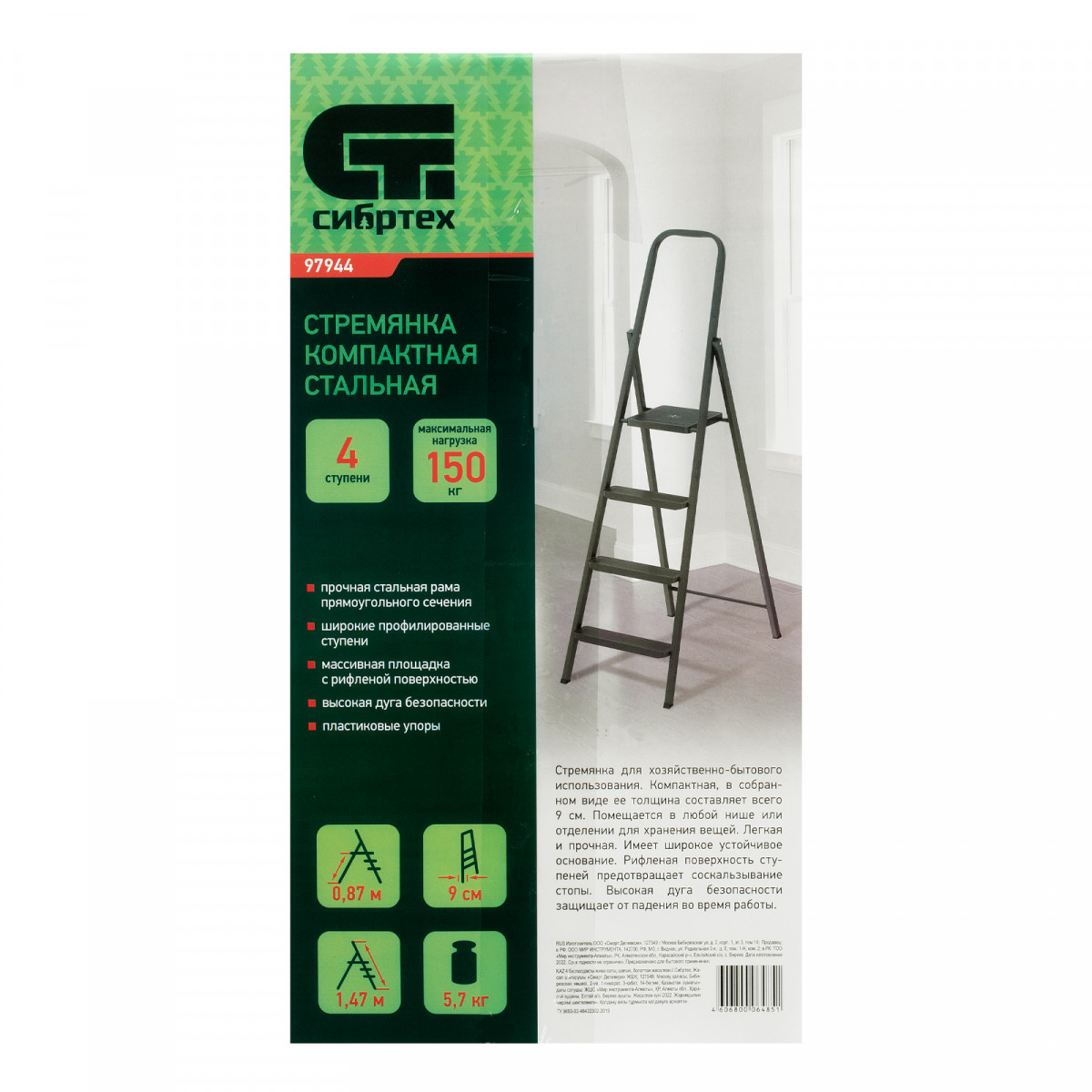 Стремянка 4 ступени, компактная, стальная Сибртех