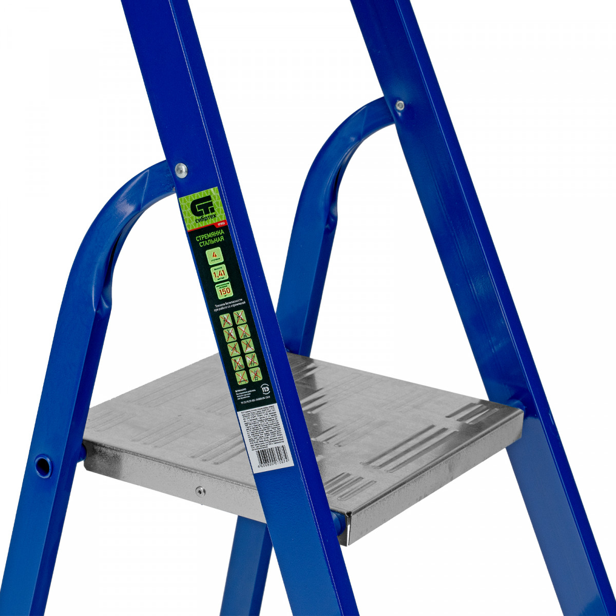 Стремянка Сибртех обладает высокой прочностью и выдерживает нагрузку до 150 кг.