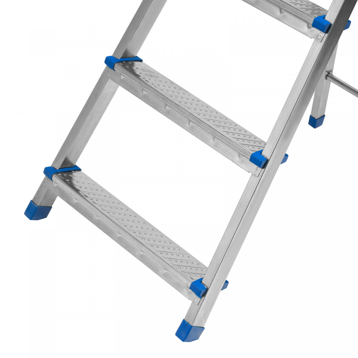 Стремянка Сибртех обеспечивает безопасность пользователя благодаря рифленым ступеням и защитным накладкам на углах.
