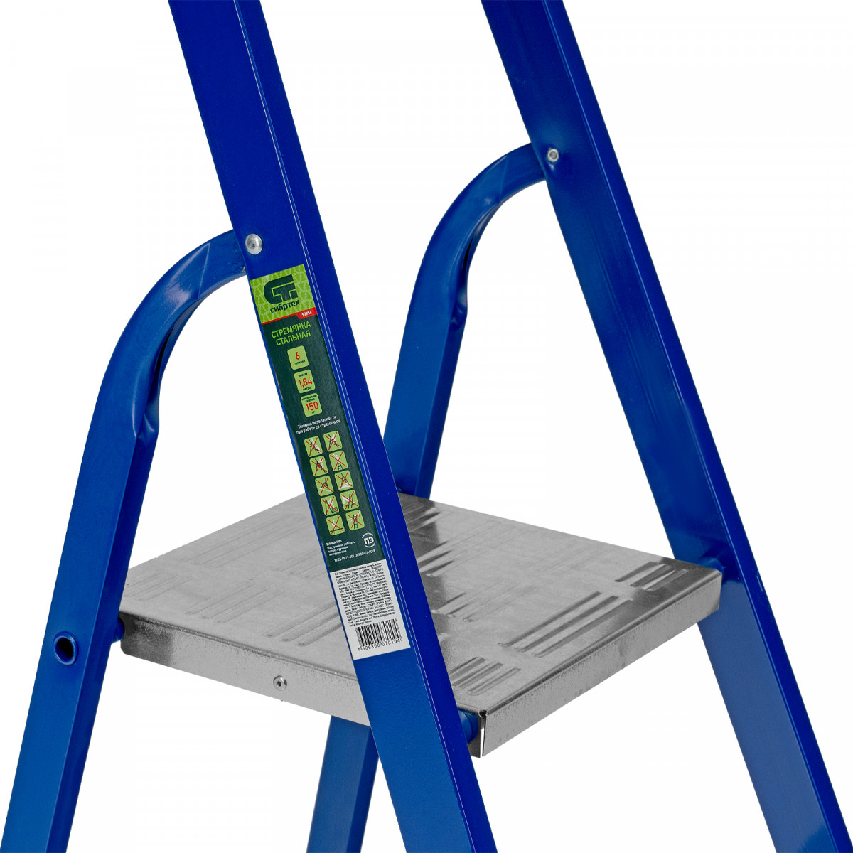 Стремянка, 6 ступеней, стальной профиль, алюминиевые ступени Сибртех