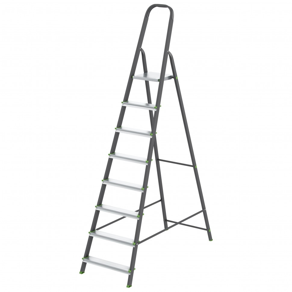 Стремянка 8 ступеней стальной профиль, алюминиевые ступени СИБРТЕХ