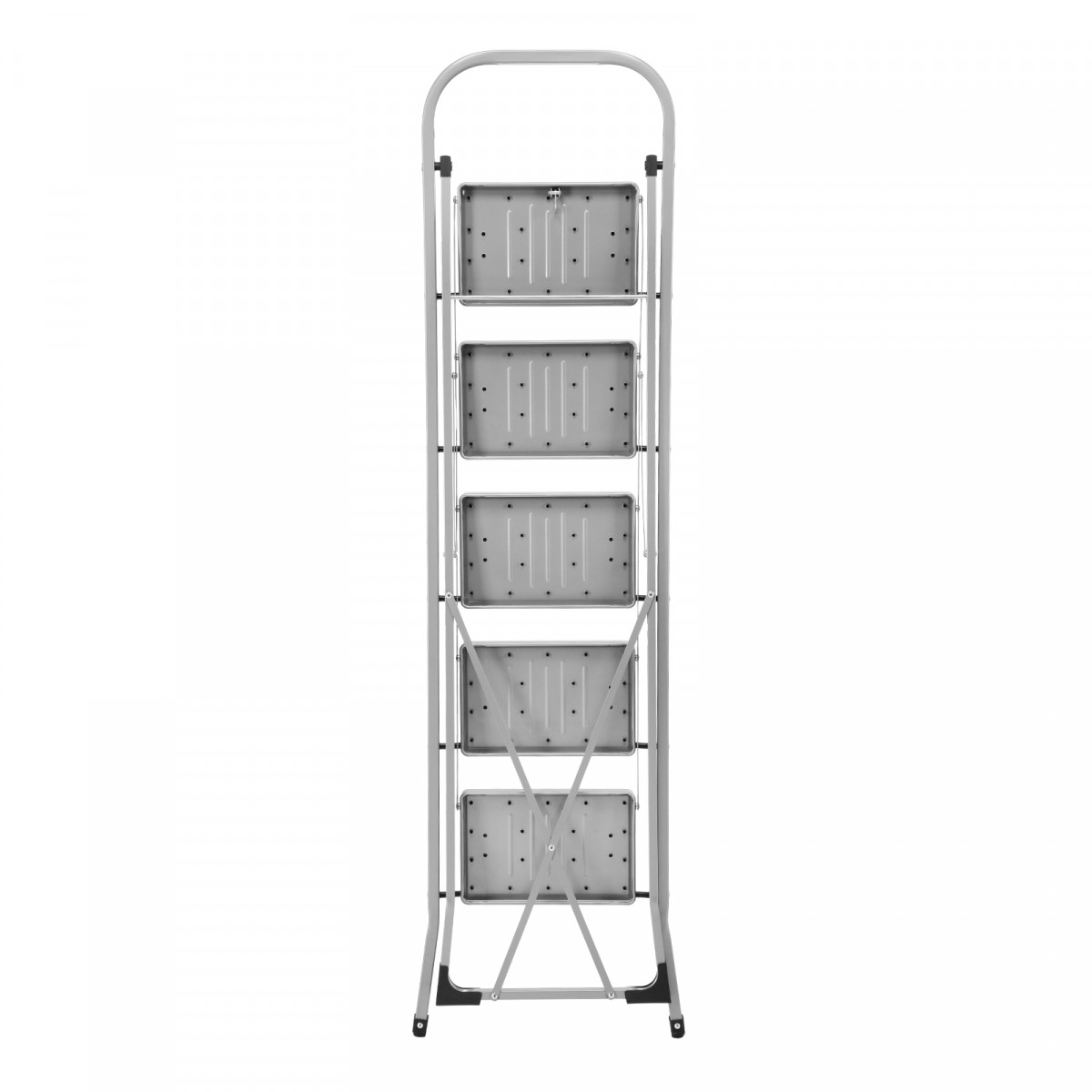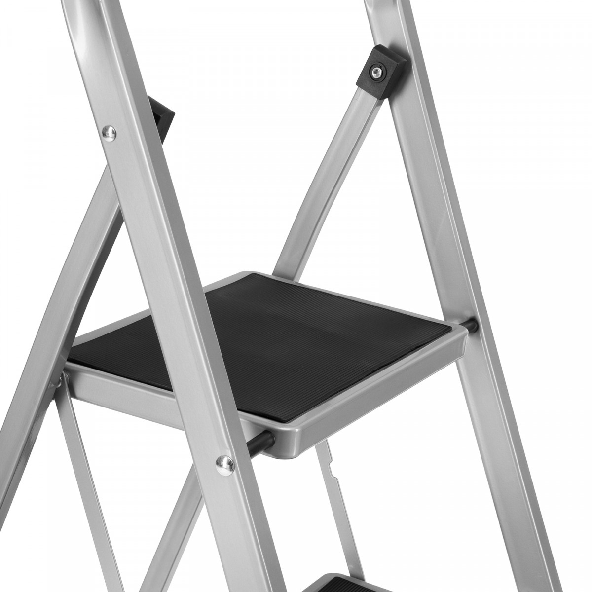 - Удобное хранение — за счет толщины в сложенном виде 4,5 см стремянка не занимает много места.