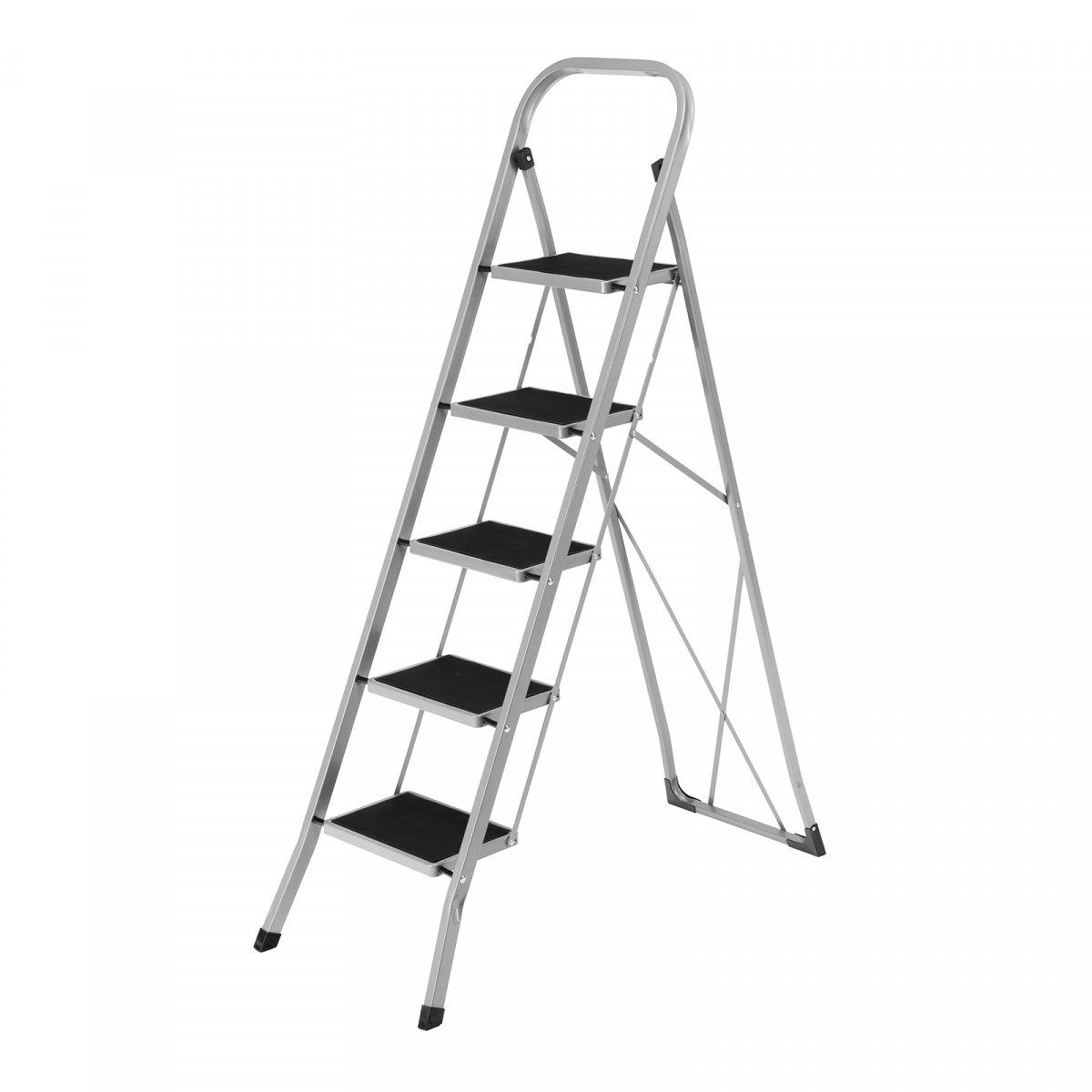 Стальная стремянка Сибртех 97729 с 5 широкими ступенями размером 20 x 30 см, с полимерным покрытием, позволяет выполнять различные работы на высоте, превышающей человеческий рост.С ее помощью можно достать нужный предмет с полки, покрасить стену, поменять лампочку, вытереть пыль на шкафу и т.д. Верхняя ступень находится на высоте 115,5 см от опорной поверхности, рабочая высота составляет 315,5 см (при среднем росте пользователя 170 см). Дуга безопасности и широкие ступени с нескользящим покрытием обеспечивают устойчивое положение пользователя. Стремянку следует размещать на ровной поверхности и использовать для работы только с ручным инструментом.