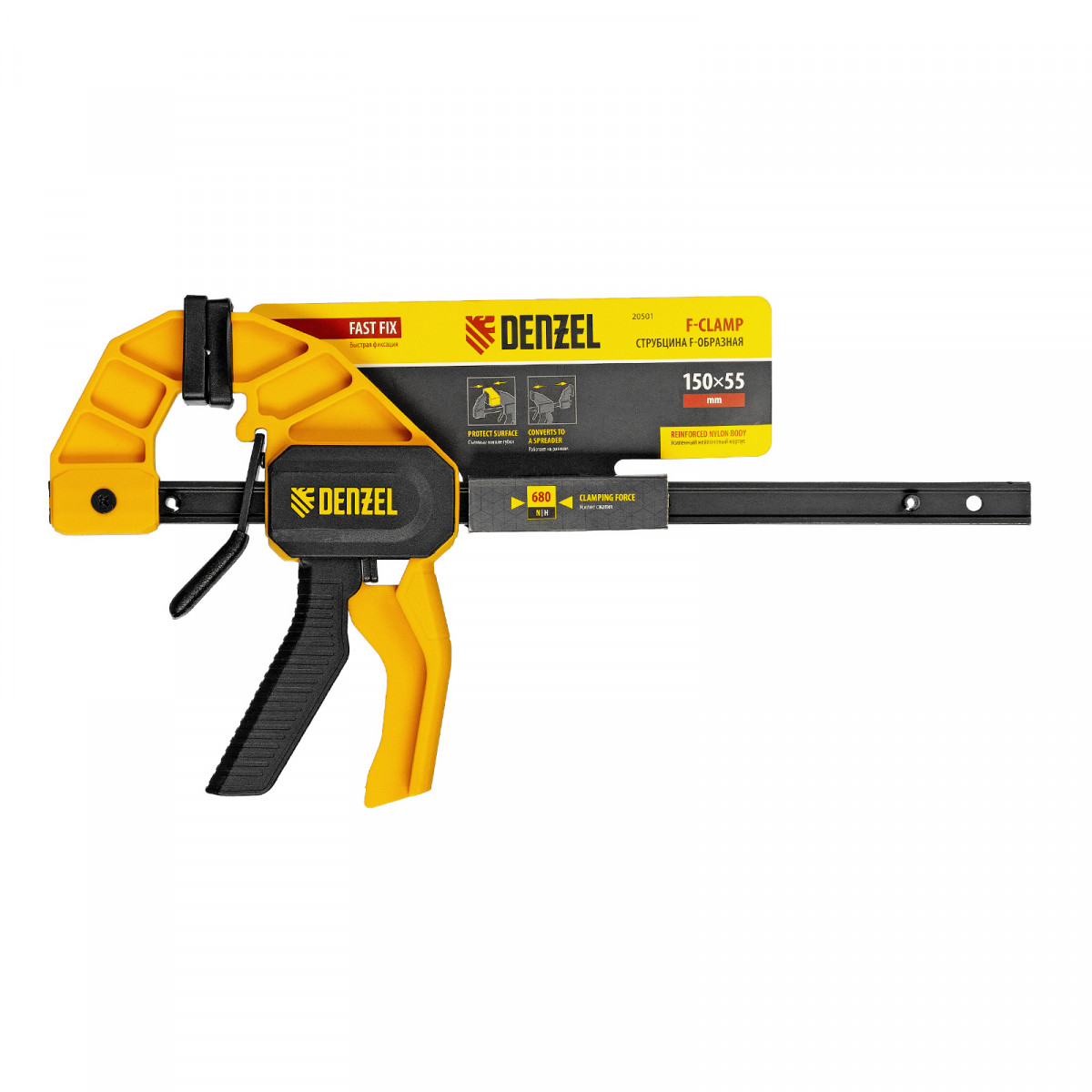 Струбцина F-образная, быстрозажимная, 150 х 55 мм, усиленный нейлоновый корпус Denzel