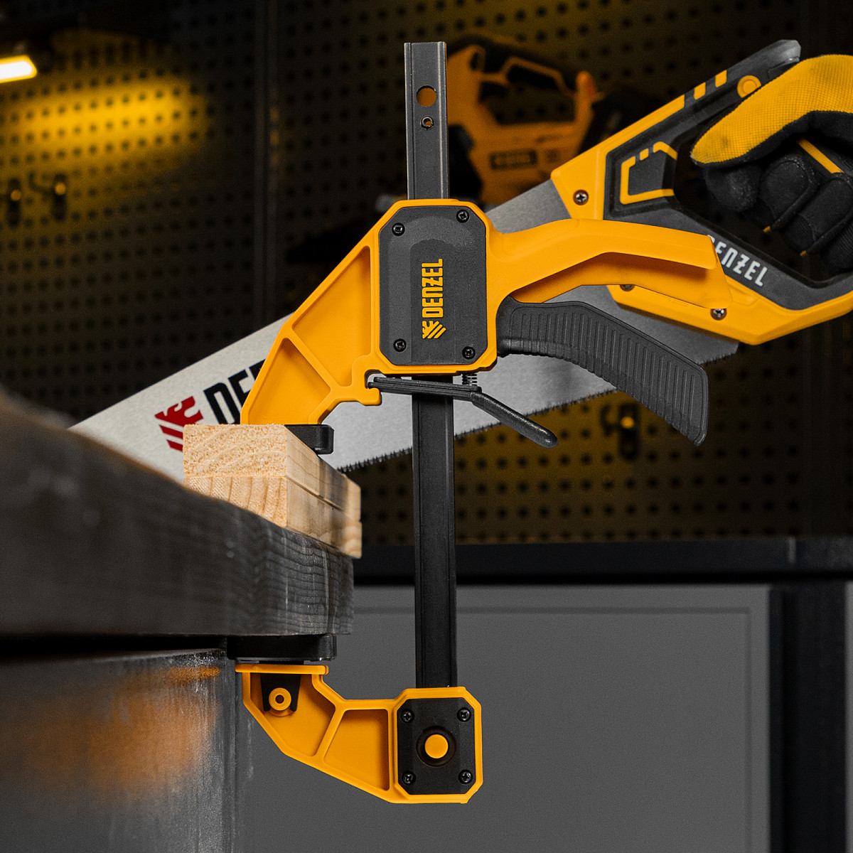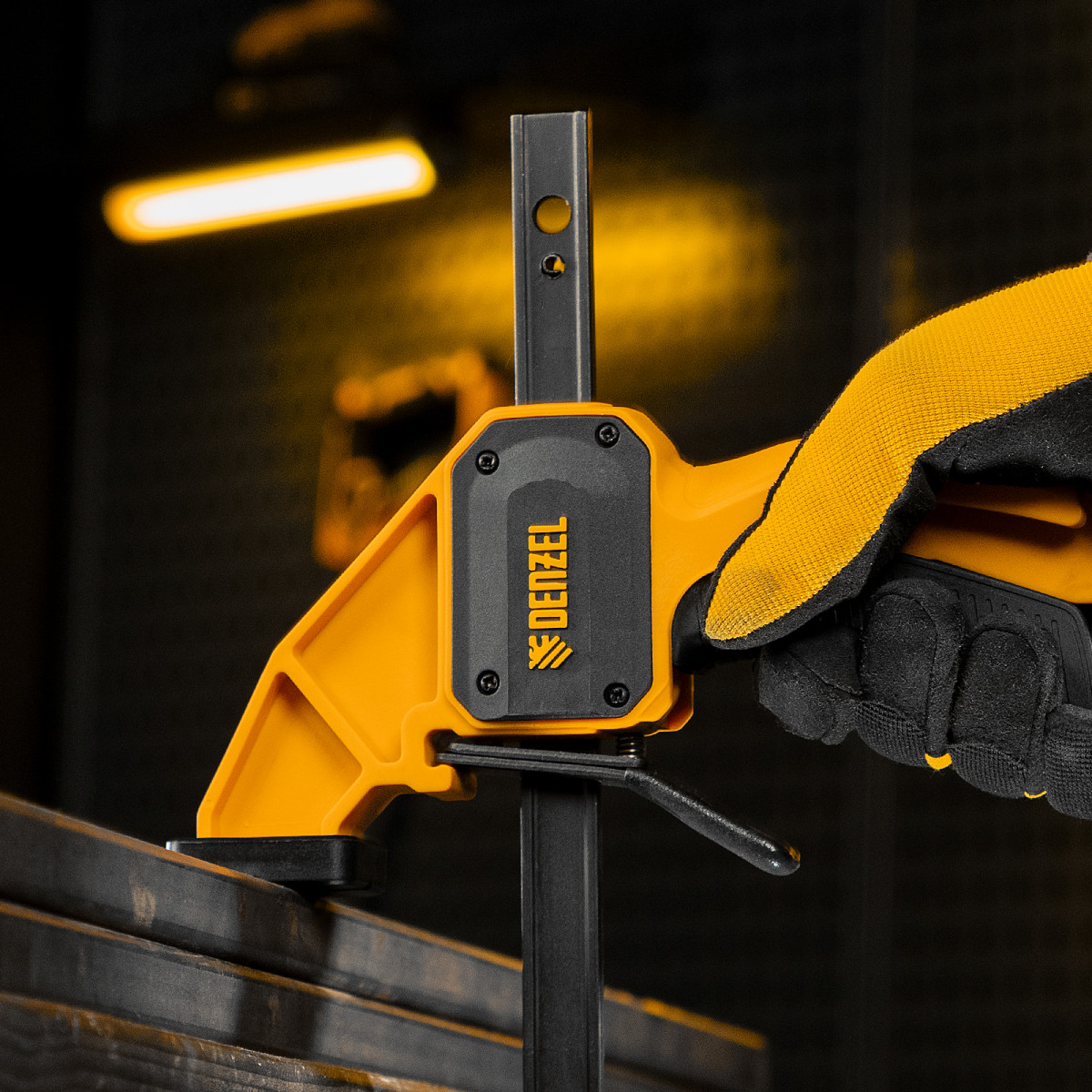 Струбцина F-образная, быстрозажимная, 150 х 80 мм, усиленный нейлоновый корпус Denzel