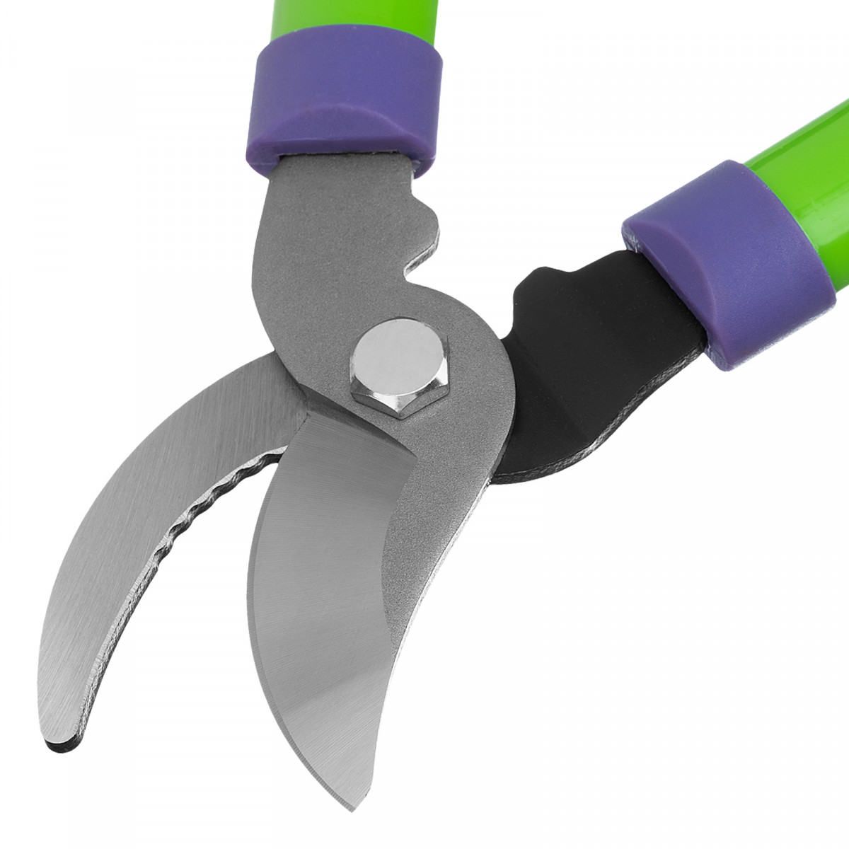 • Устойчивость к разрушению — тефлоновое покрытие режущего лезвия и порошковая эмаль на опорном лезвии и рукоятках защищают сучкорез от коррозии.