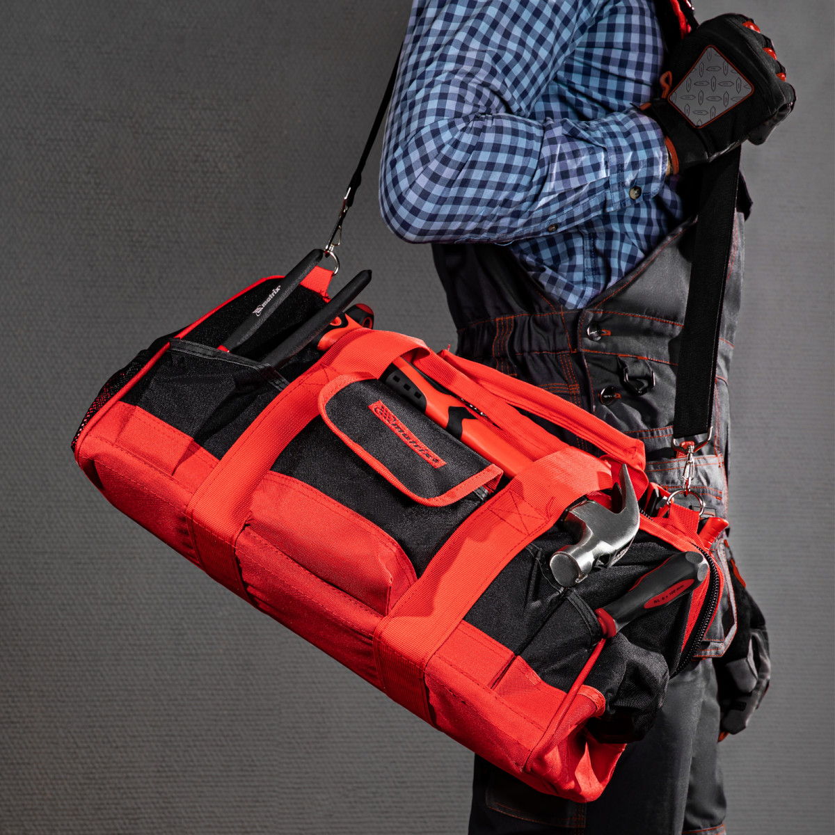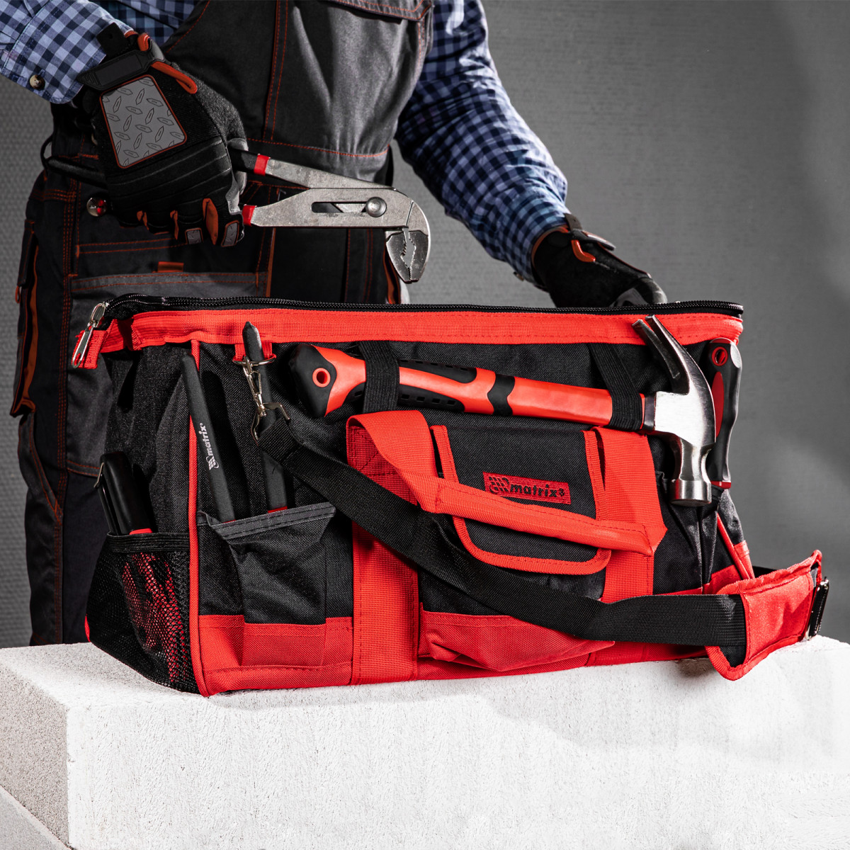 Сумка Matrix 90256 с 32 карманами, 460 х 280 х 305 мм, предназначена для транспортировки и хранения слесарных или столярных инструментов. Может использоваться для перевозки автопринадлежностей. В ней 32 кармана и вместительное основное отделение, в которых можно разместить инструменты разного размера. Сумка комплектуется наплечным ремнем с расширяющей накладкой для удобства переноски. Пригодится монтажникам, слесарям, строителям, будет полезна дома и в поездке.