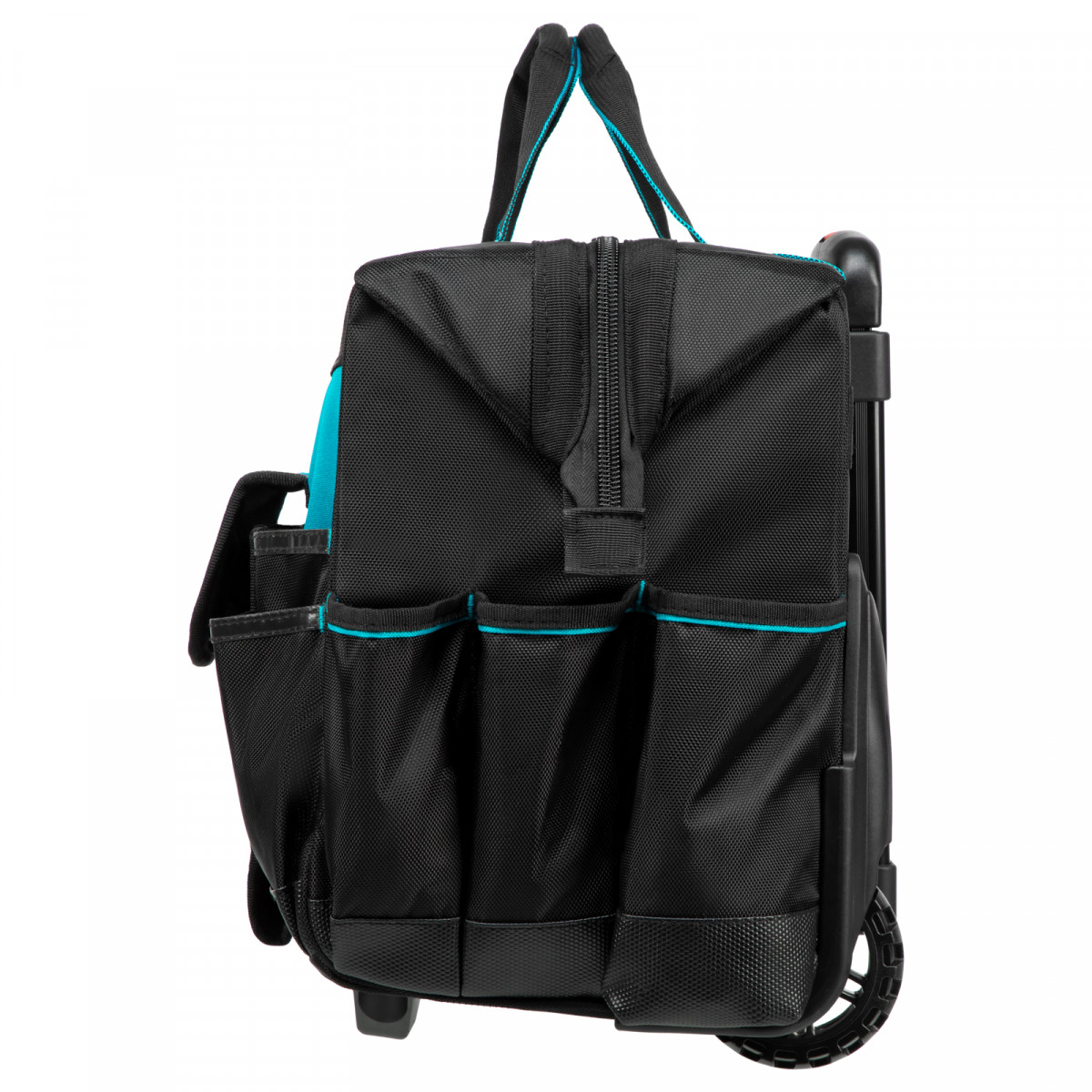 • Мобильность — сумку с инструментами легко перемещать при помощи колес и телескопической рукоятки.