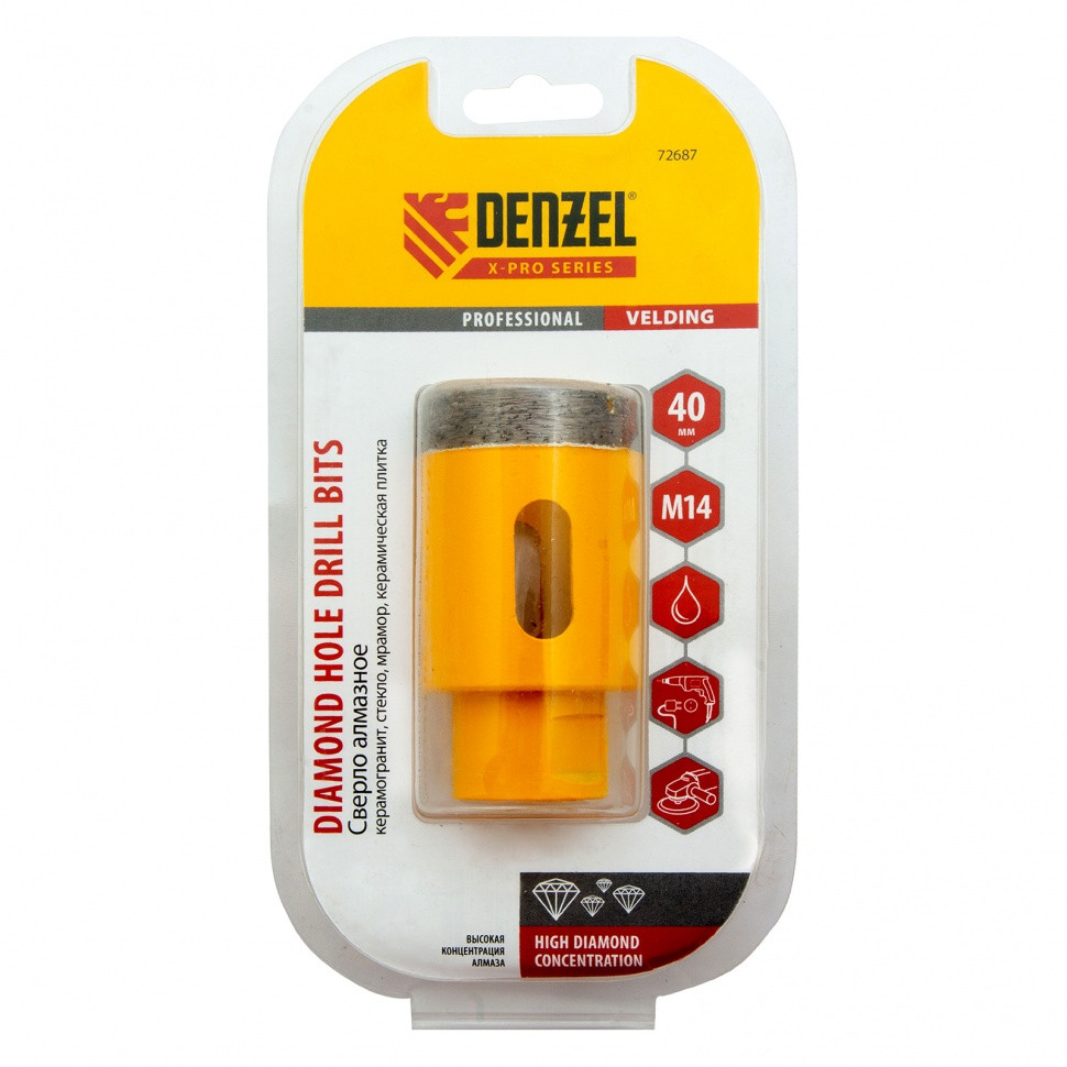 Сверло алмазное по керамограниту, 40 мм, мокрая резка, М14 Denzel