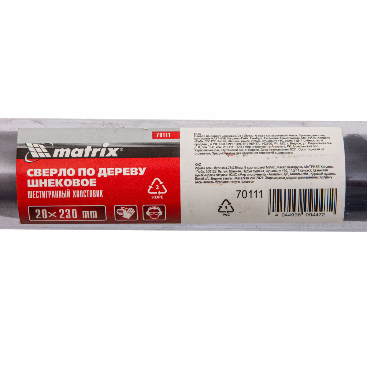 Сверло по дереву шнековое, 28 х 230 мм, шестигранный хвостовик Matrix
