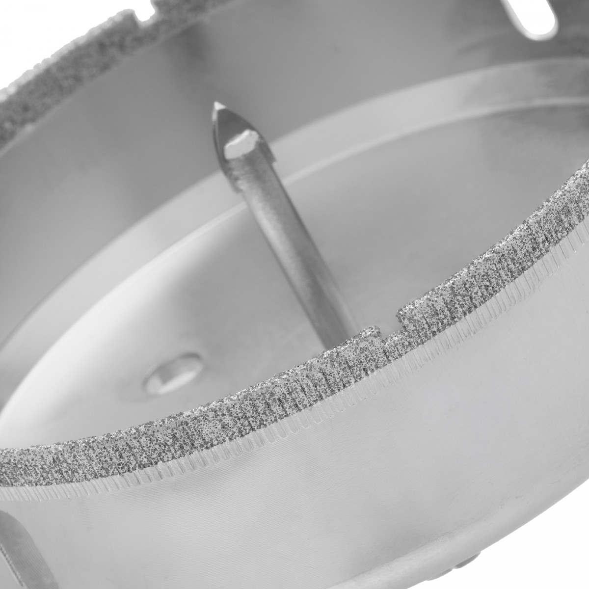 - Точное позиционирование — центрирующее сверло быстро заглубляется в материал, не давая коронке сдвигаться во время сверления.