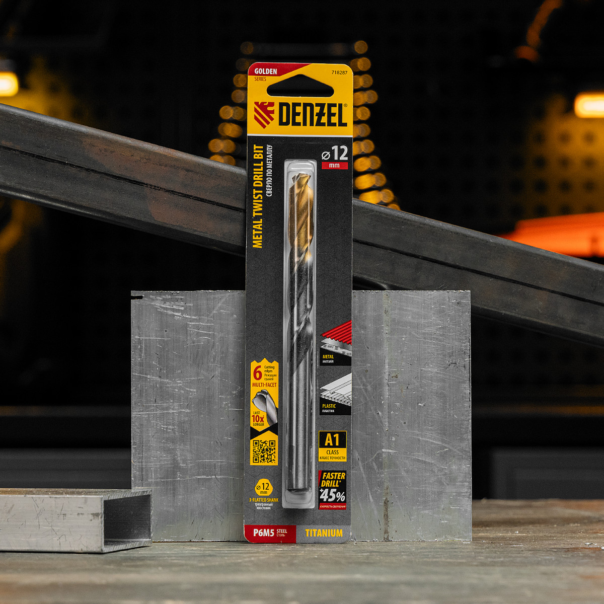 Спиральное сверло по металлу Denzel Golden Tip 718287 из стали P6M5, размером 12 х 151 мм, с многогранной заточкой, предназначено для получения отверстий в легированных сталях и цветных металлах. Многогранная заточка позволяет получать чистые и ровные отверстия практически без заусенцев. Сверлу присвоен класс точности A, что гарантирует высокое качество работ. Оснастка подходит для бытового и профессионального применения.