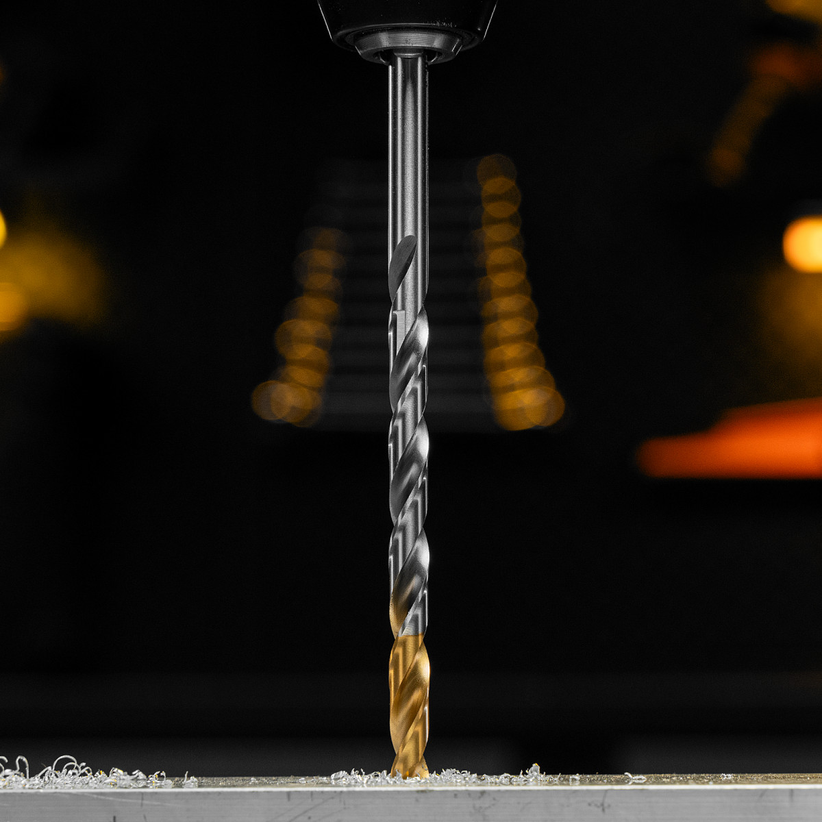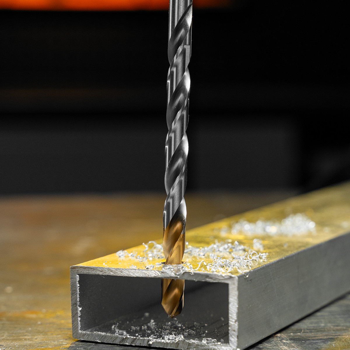 • Высокая производительность — поверхность сверла покрыта нитридом титана, что снижает трение о стенки отверстия и уменьшает нагрев, а также улучшает отвод стружки.