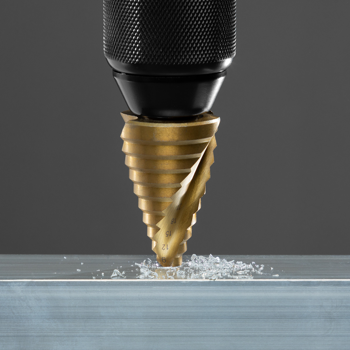 Ступенчатое сверло Matrix 72358 из стали HSS, со спиральным профилем и трехгранным хвостовиком, позволяет получать отверстия диаметром 9-12-15-18-21-24-27-30-33-36 мм в материалах толщиной до 5 мм: стали, цветных металлах, нержавейке и пластике. Благодаря плавному ступенчатому переходу и возможности сразу снять фаску отверстие получается аккуратным и имеет ровные края.