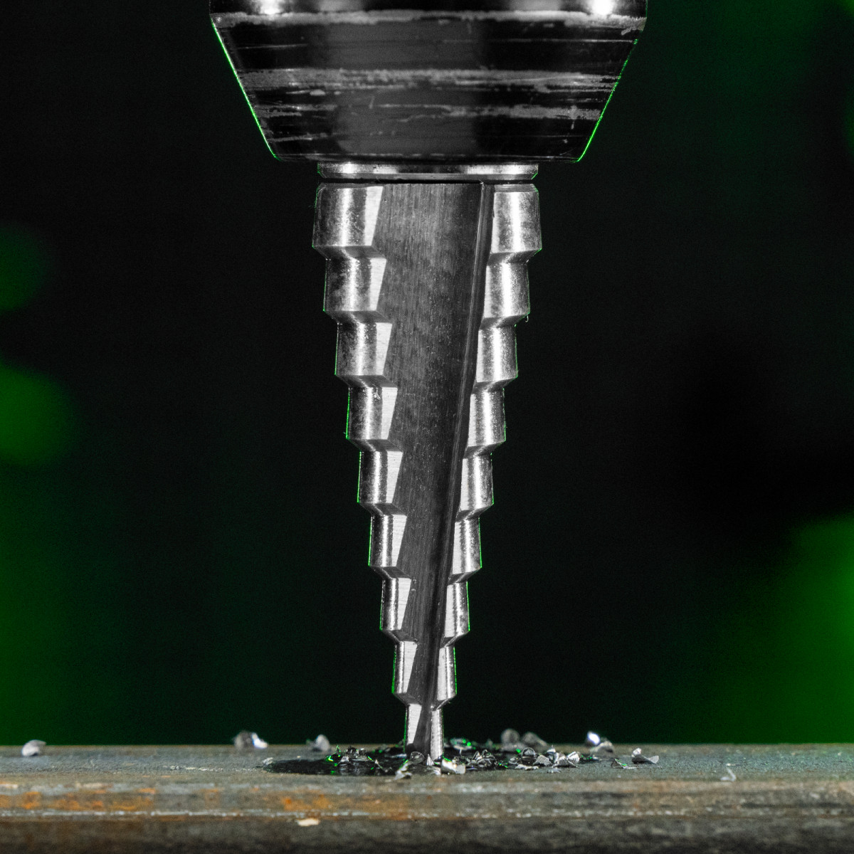Ступенчатое сверло Сибртех 723012 предназначено для сверления отверстий диаметром от 4 до 20 мм в сталях, цветных металлах и пластике. Избавляет от необходимости иметь при себе целый набор традиционных сверл. Позволяет получать отверстия с ровными краями и уже снятой фаской под гайку или болт. Сверло пригодится дома и в мастерской.