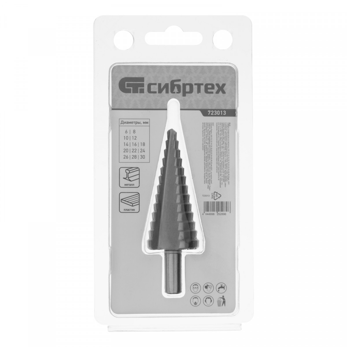 Сверло ступенчатое по металлу, 6-8-10-12-14-16-18-20-22-24-26-28-30мм, 4241 Сибртех