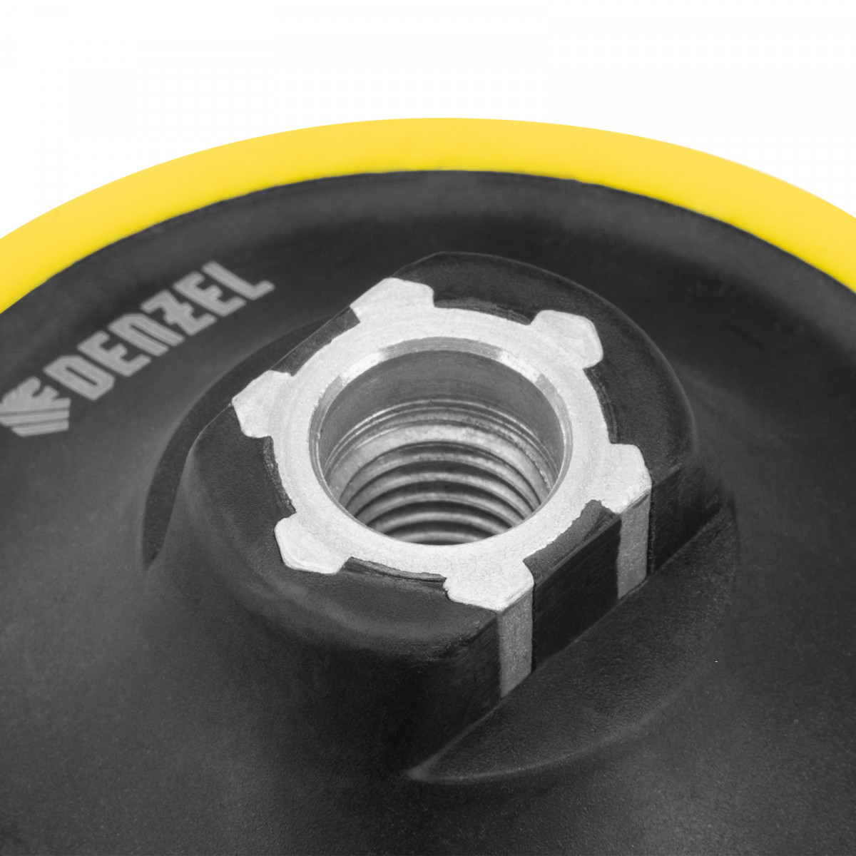 Тарелка опорная для дрели и УШМ с липучкой, 125 мм, мягкая, с адаптером c М14 на d8 Denzel