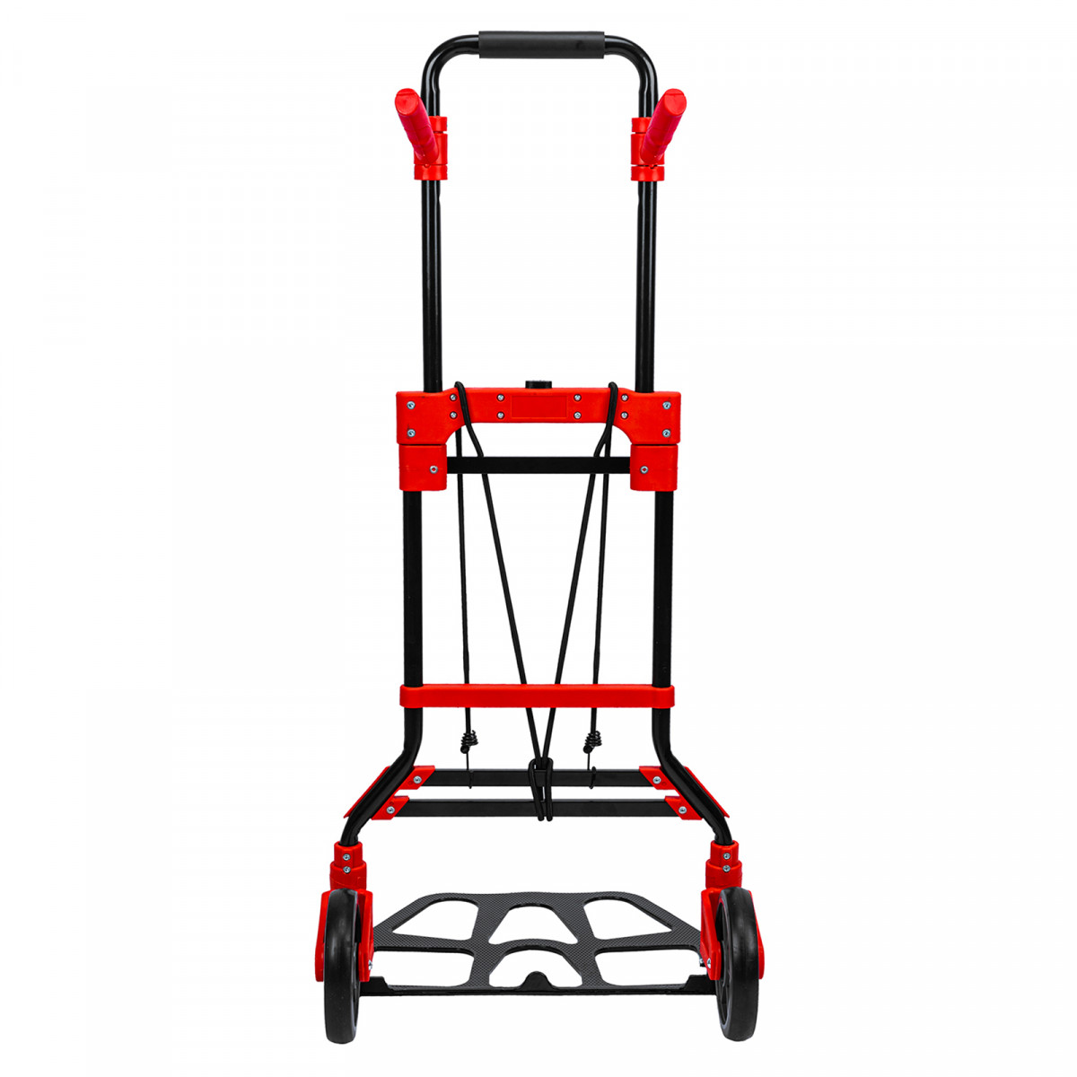 - Удобное хранение и транспортировка — платформа и колеса складываются, поэтому тележка не занимает много места.