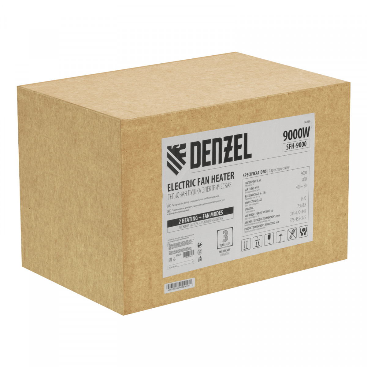 Тепловая пушка SFH-9000, 400 В, 850 м3/ч, вентилятор 3 режима, 6000/9000 Вт Denzel