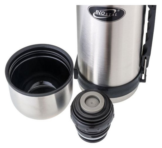 Термос 1,2 л БИОСТАЛЬ с узкой горловиной и ручкой