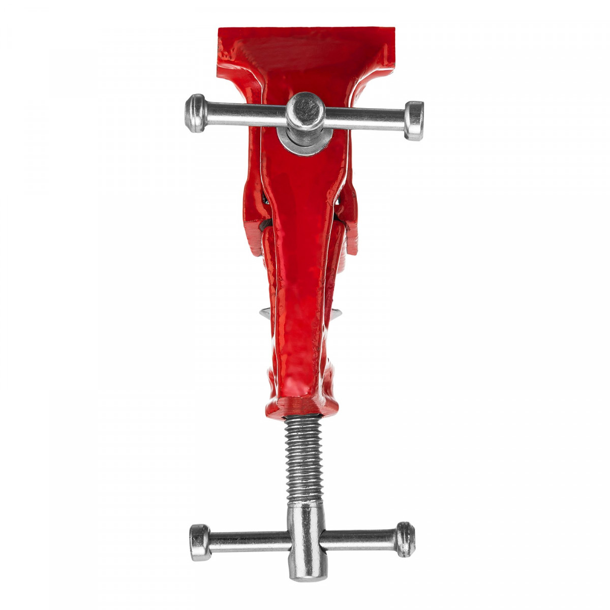 - Простое использование — винтовой зажимной механизм позволяет легко устанавливать и снимать тиски с рабочего стола.