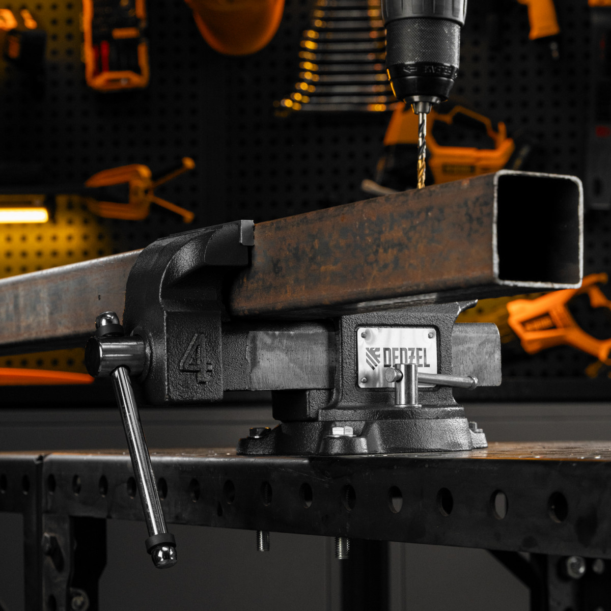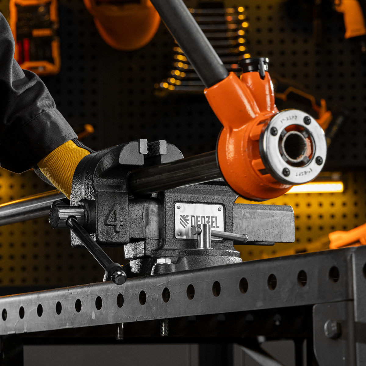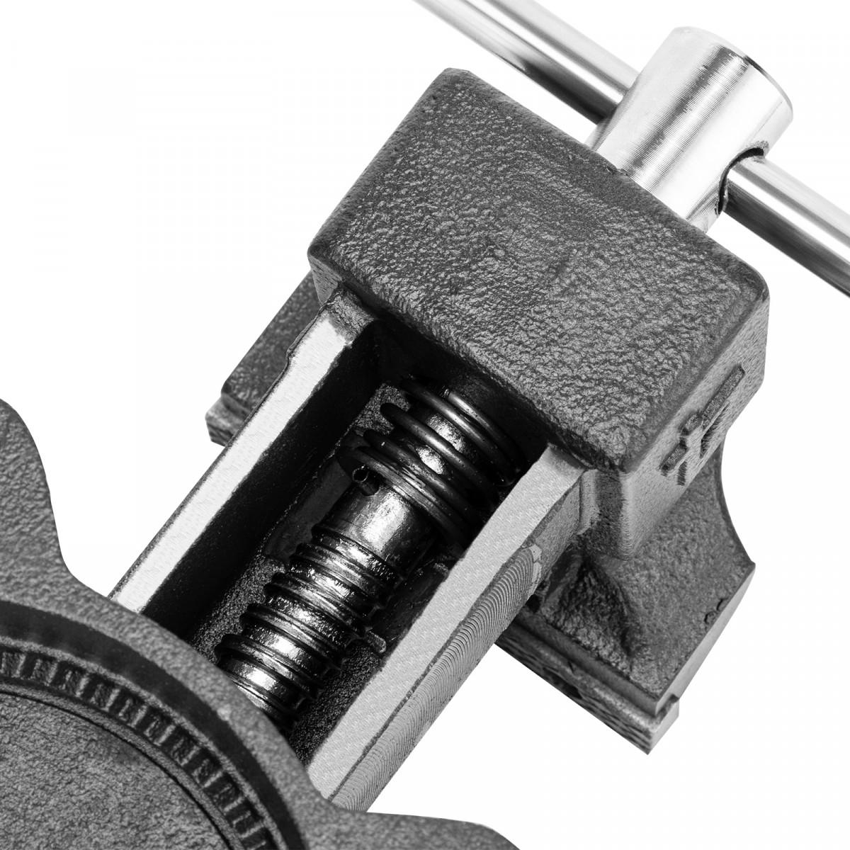 • Функциональность — тиски поворачиваются на 360°, что позволяет менять и выбирать позицию инструмента для удобной работы с заготовкой.