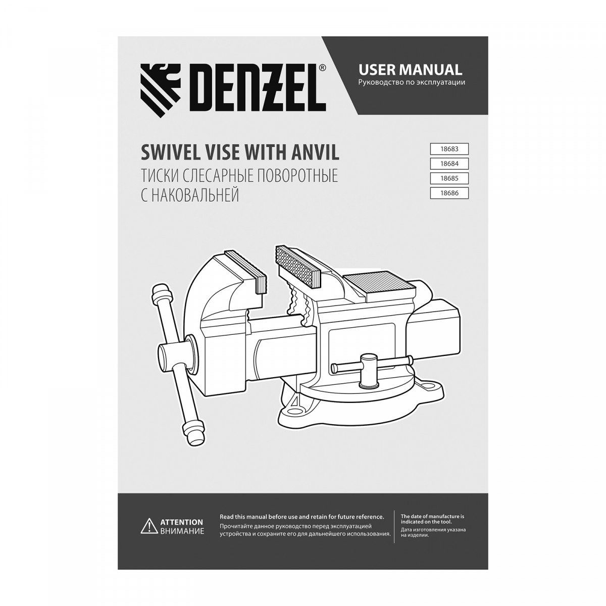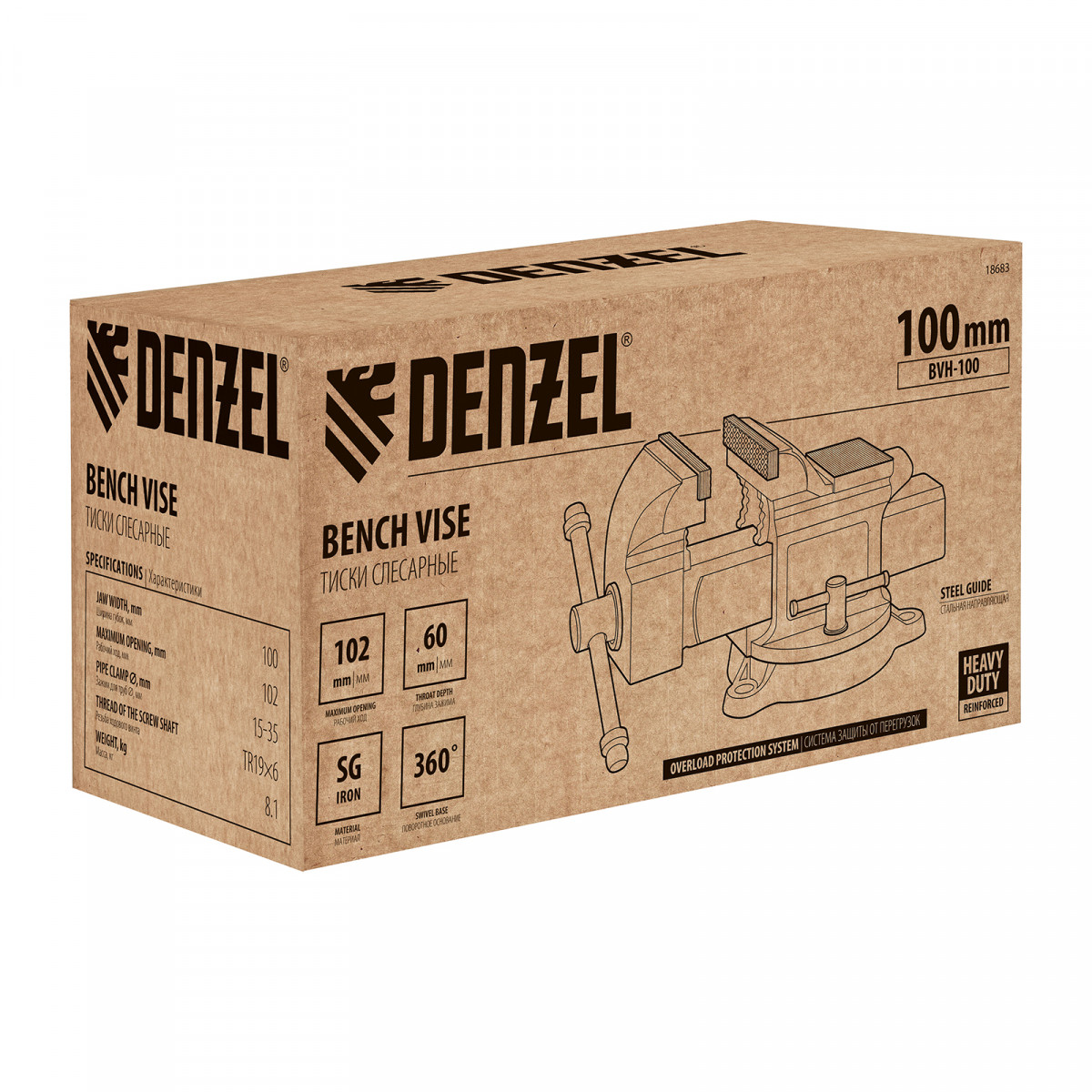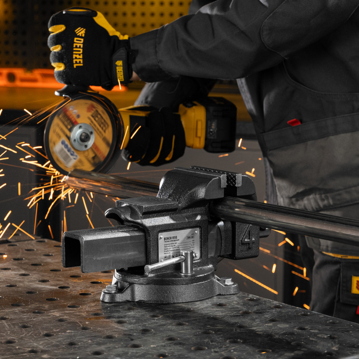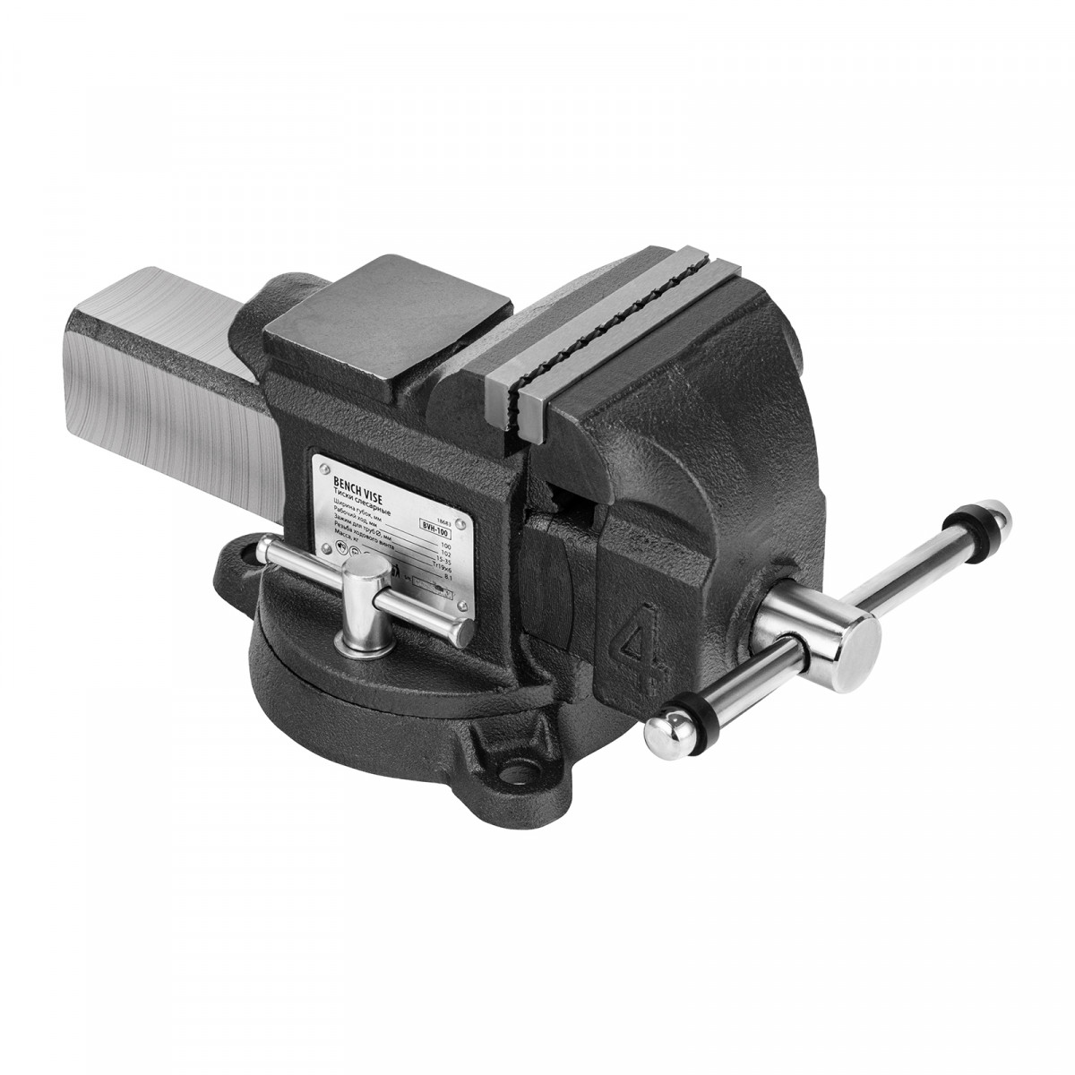 Тиски слесарные BVH-100, 100 мм, поворотные, стальная направляющая, с наковальней //Denzel