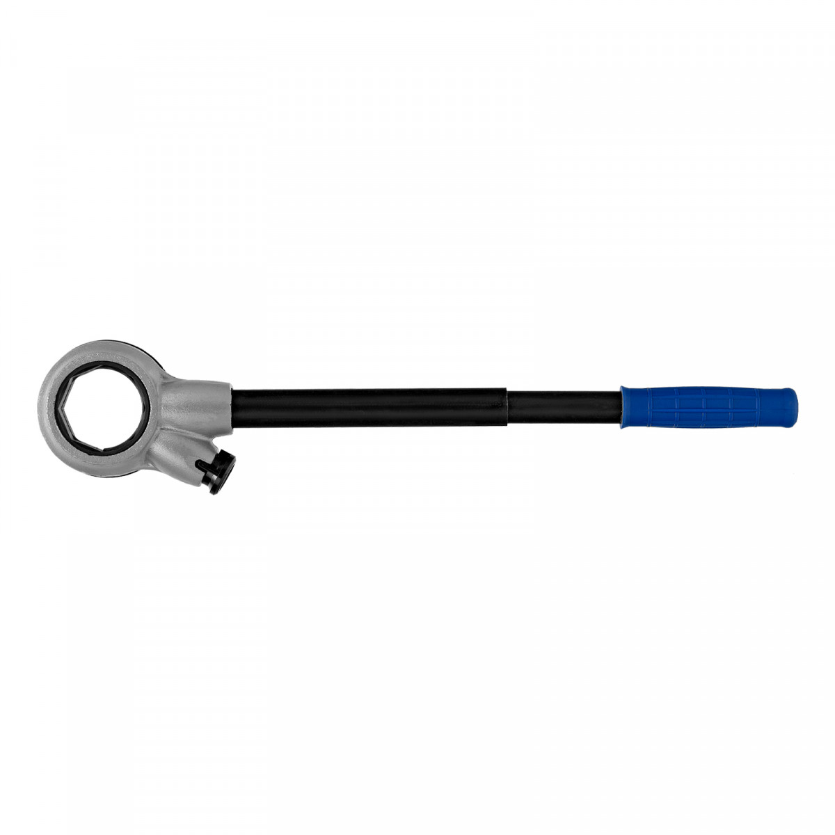 Трещотка для клуппов с удлинителем Сибртех 77373 удерживает клупп во время нарезания трубной резьбы. Удлиненная ручка позволяет увеличить крутящий момент, не прилагая значительных усилий. Трещотка используется для монтажа трубопроводов и решения бытовых задач.