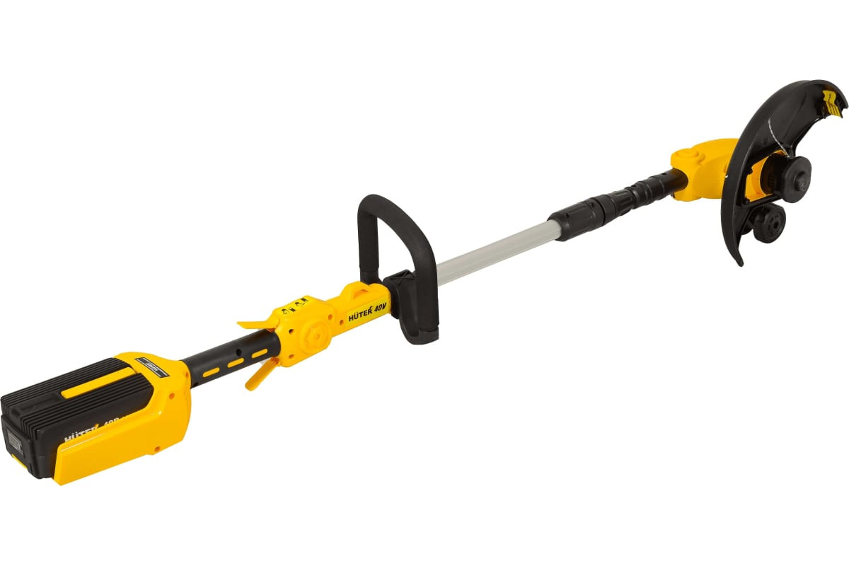 Huter GET-40-4Li– электрический аккумуляторный инструмент для скашивания травы при помощи нейлоновой лески. Небольшой вес инструмента и дополнительная ручка, расположенная на штанге, делают работу с ним удобной и простой. Литиевый аккумулятор триммера выдает напряжение 40 В, имеет емкость 4 Ач, и заставляет мотор вращаться со скоростью 8000 об.*мин. Время, необходимое для полной зарядки аккумулятора – 60 мин. Разборная конструкция штанги делает аккумуляторный триммер компактным для перевозки и хранения. Катушка заправляется леской толщиной 1,6 мм и оснащена обрезчиком, ограничивающим вылет лески. Полоса скашивания - 31 см за один проход. На рукоятке удобно расположены кнопка включения двигателя и кнопка фиксации во включенном состоянии. Достоинства Huter GET-40-4Li: низкий уровень шума при работе; быстрая зарядка аккумулятора; большая продолжительность работы на одной зарядке; неприхотливость в обслуживании; автономность работы и отсутствие необходимости в ГСМ.