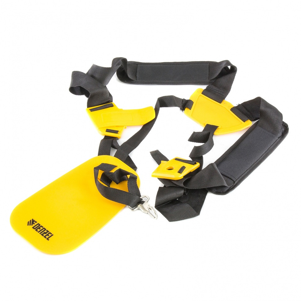 • Комфортная работа — плечевой ремень с защитой бедра снимает нагрузку с рук оператора, регулировка ремня по росту снимает проблему удержания триммера для высоких людей.
