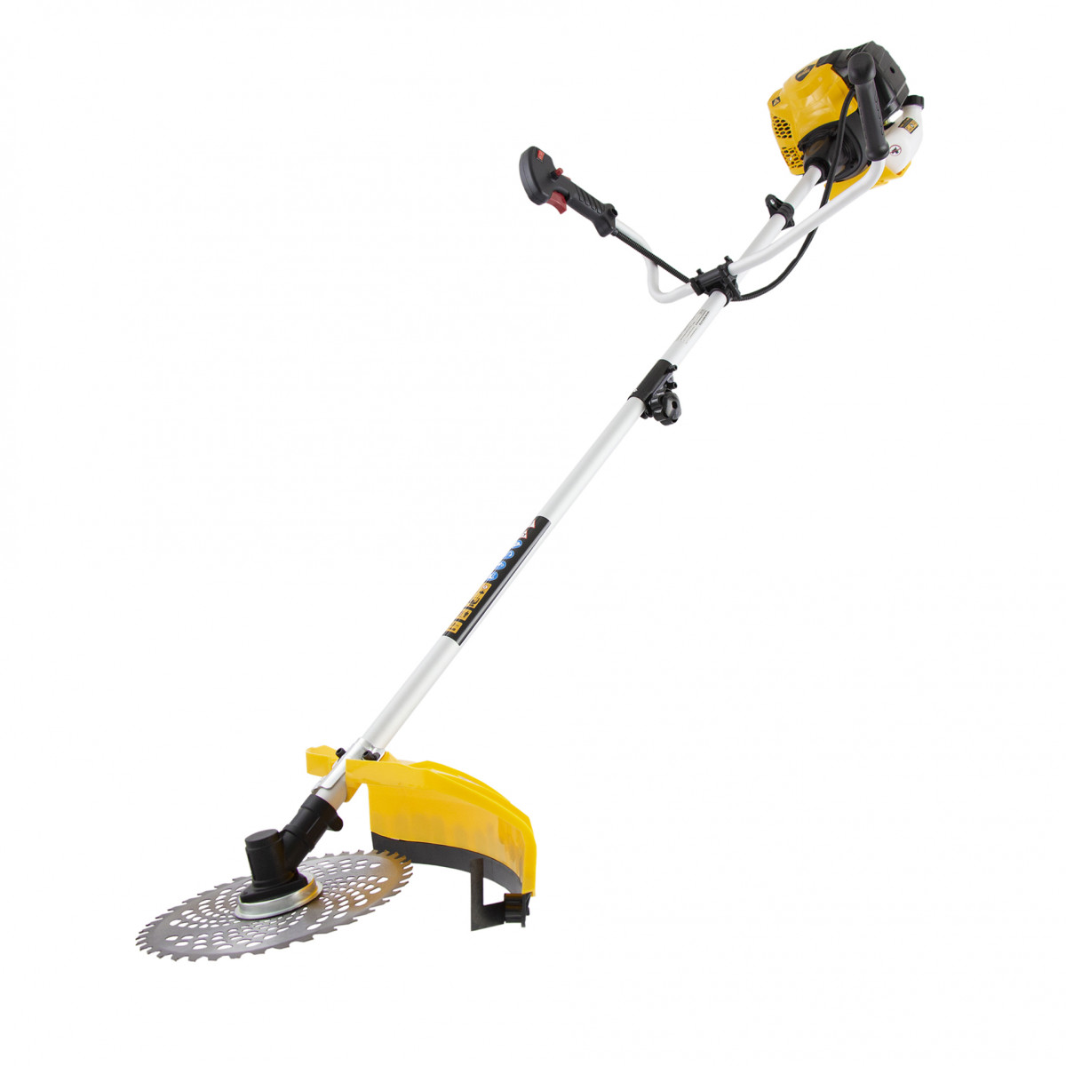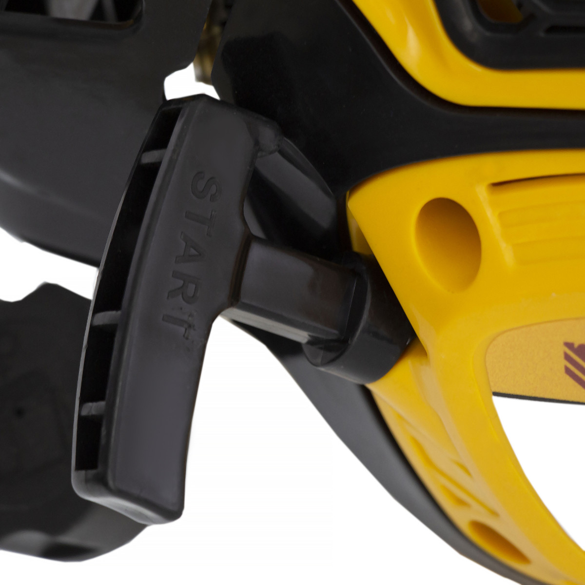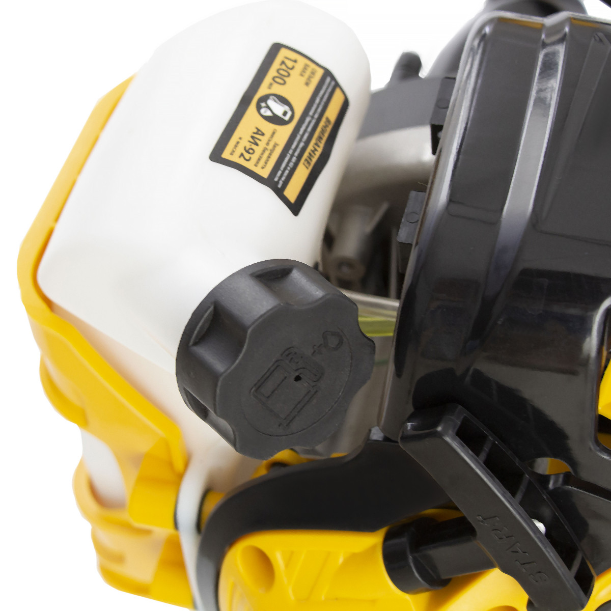 • Безопасность — клавиша блокировки газа предотвращает случайный запуск двигателя, прочный кожух исключает вылетание травы, веток и камней на пользователя.