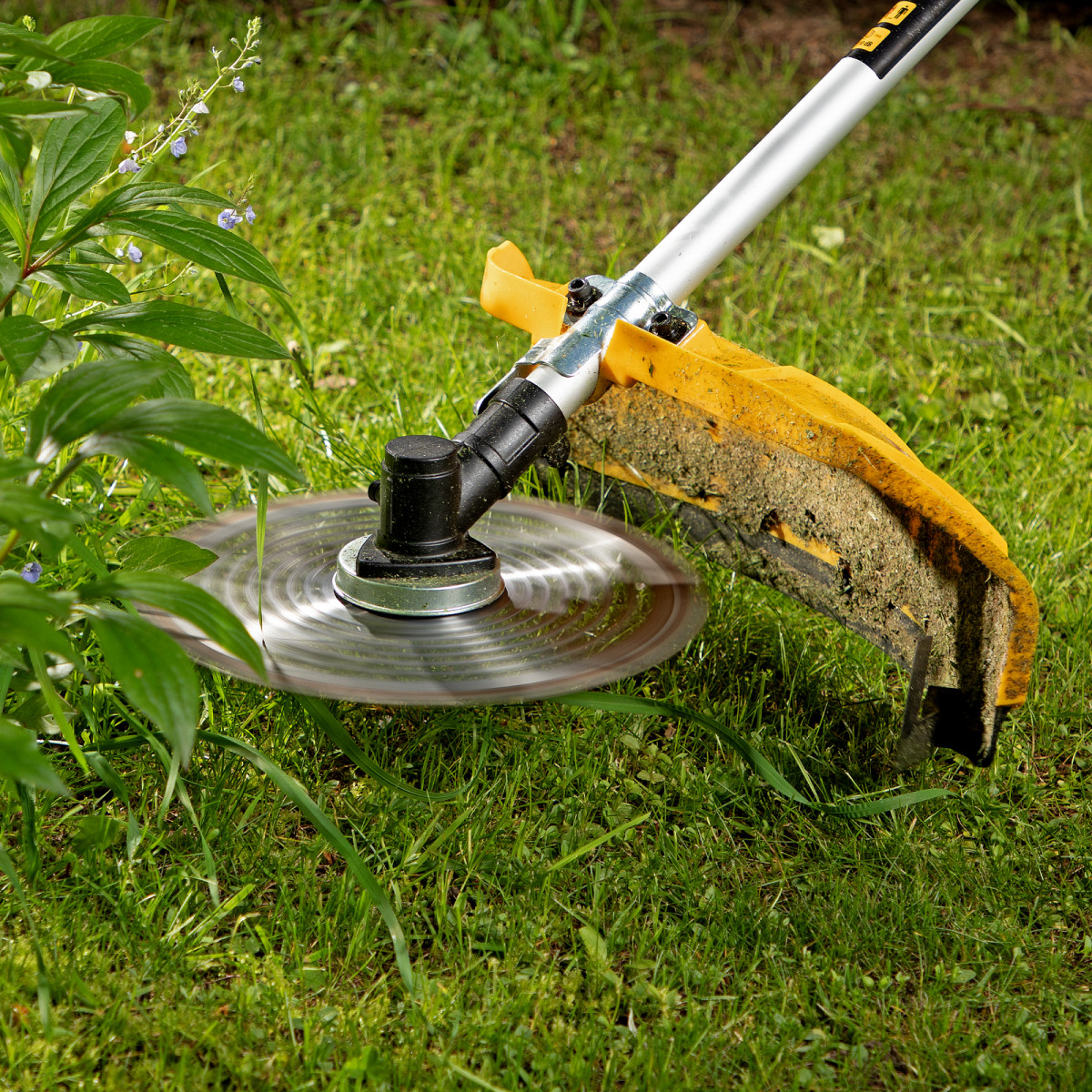 • Дополнительные возможности — можно приобрести и установить на триммер диски Denzel 96323, 96325 для быстрого удаления растительности с жесткими стеблями (полыни, крапивы, лебеды), 96328 для скашивания молодых побегов кустарника диаметром до 3 мм.