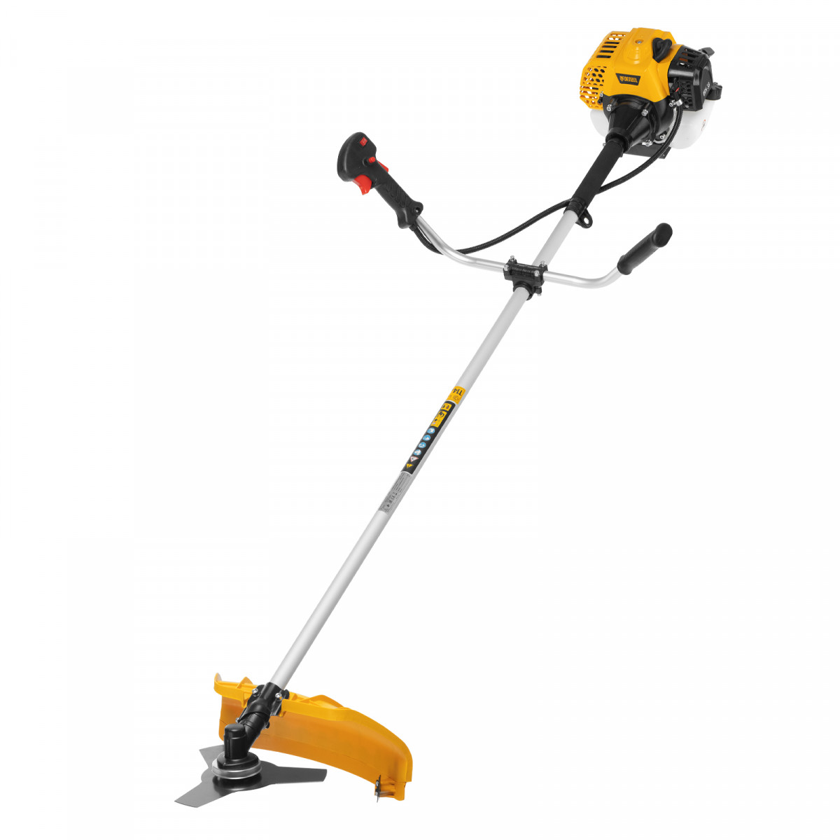 Бензиновый триммер Denzel DTS-33 962115 с двигателем объемом 33 куб. см и неразъемной штангой поставляется комплектом из 2 частей. Усиленная катушка с леской предназначена для скашивания мягкой травы, а трехлопастный нож — для скашивания травы различных типов, в том числе с жесткими стеблями (полыни, крапивы, лебеды). Ширина скашивания леской составляет 42 см, ножом — 25,5 см.,Двухтактный бензиновый двигатель мощностью 1,8 л.с. обеспечивает эффективное решение поставленных задач и полную автономность. Работать можно даже в самых отдаленных участках сада, не заботясь о наличии сети электропитания.