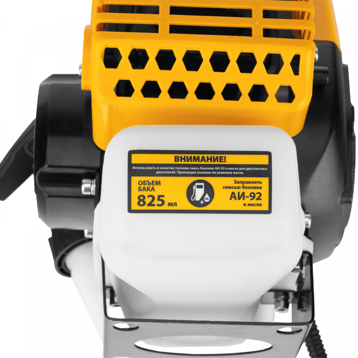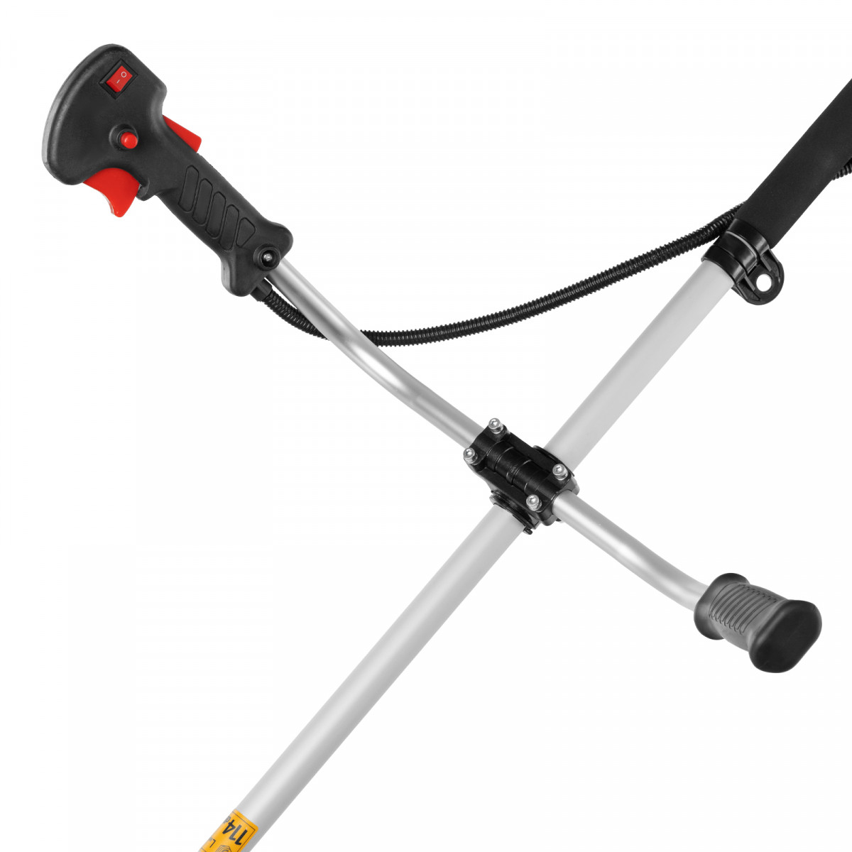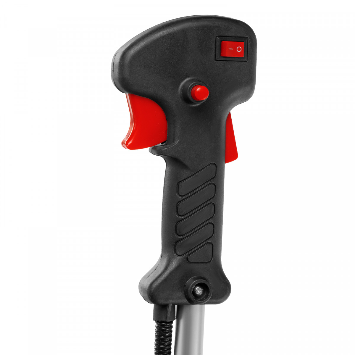 • Защита от случайного пуска — блокиратор курка газа предотвращает включение триммера по неосторожности, обеспечивая безопасность пользователя.