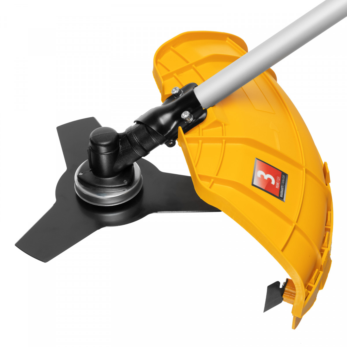 • Безопасная эксплуатация — прочный кожух, закрывающий оснастку, защищает пользователя от летящей травы, грязи и мелких камней.